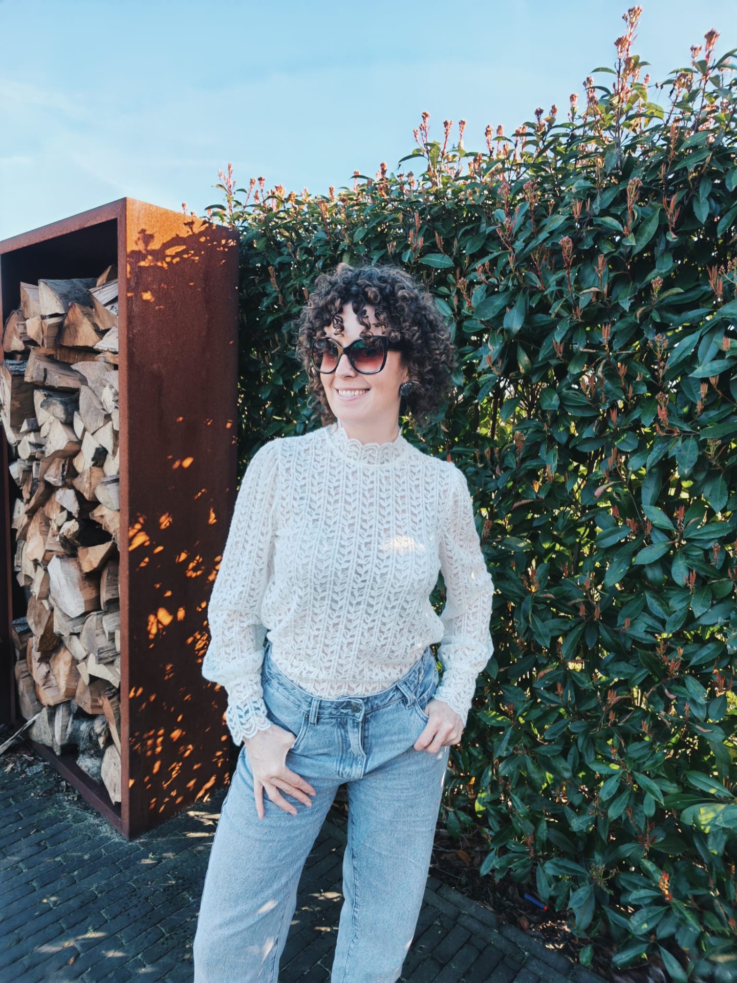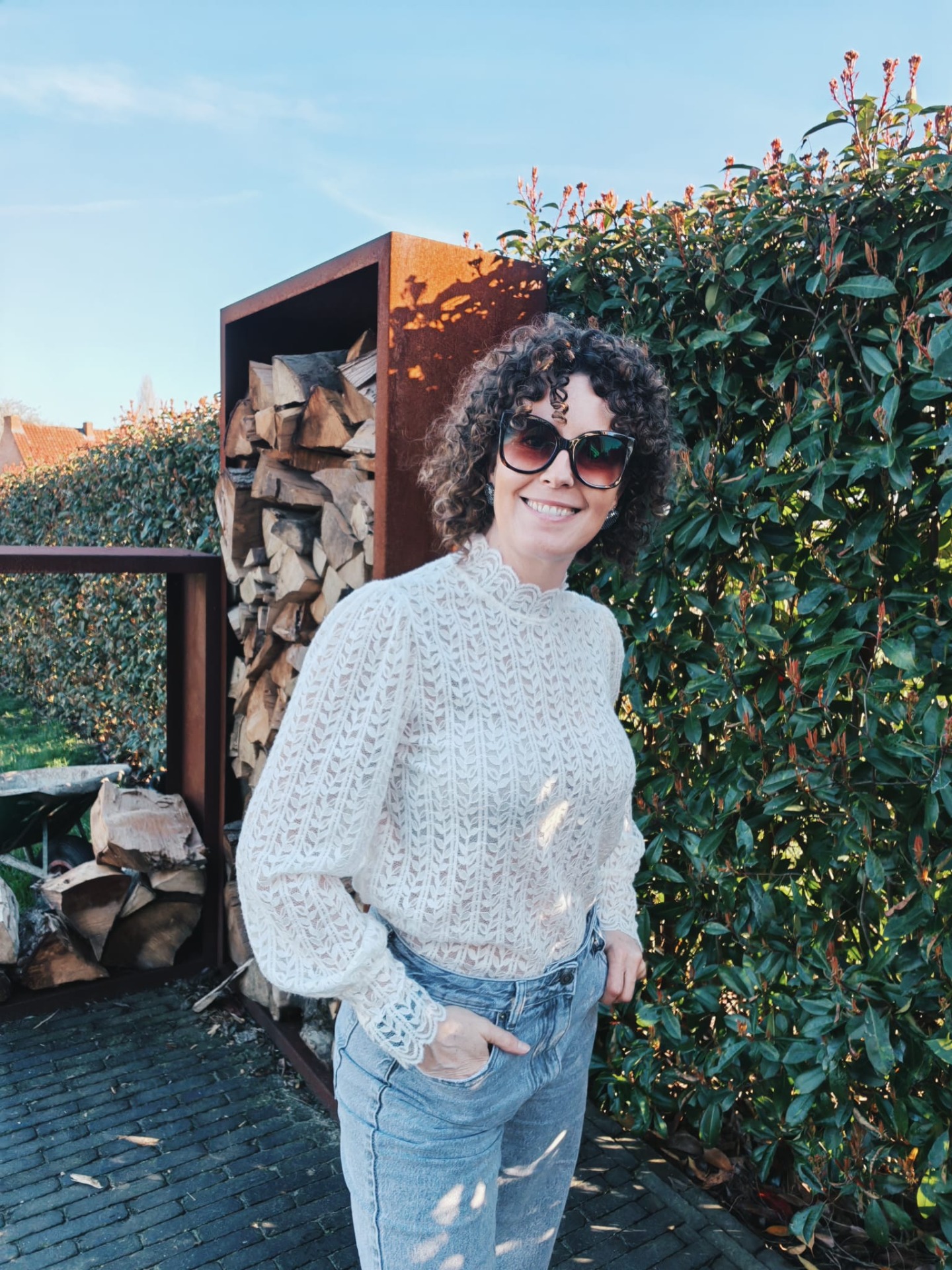 Prachtige blouse met opstaande kraagje en mooie mouwen.Draag deze zo of onder een trui en laat de mooie details zien.