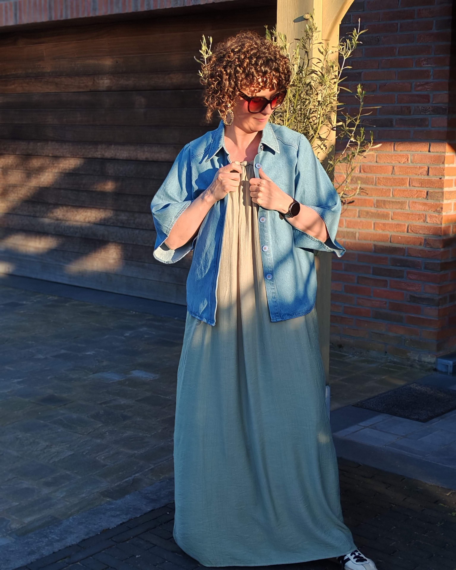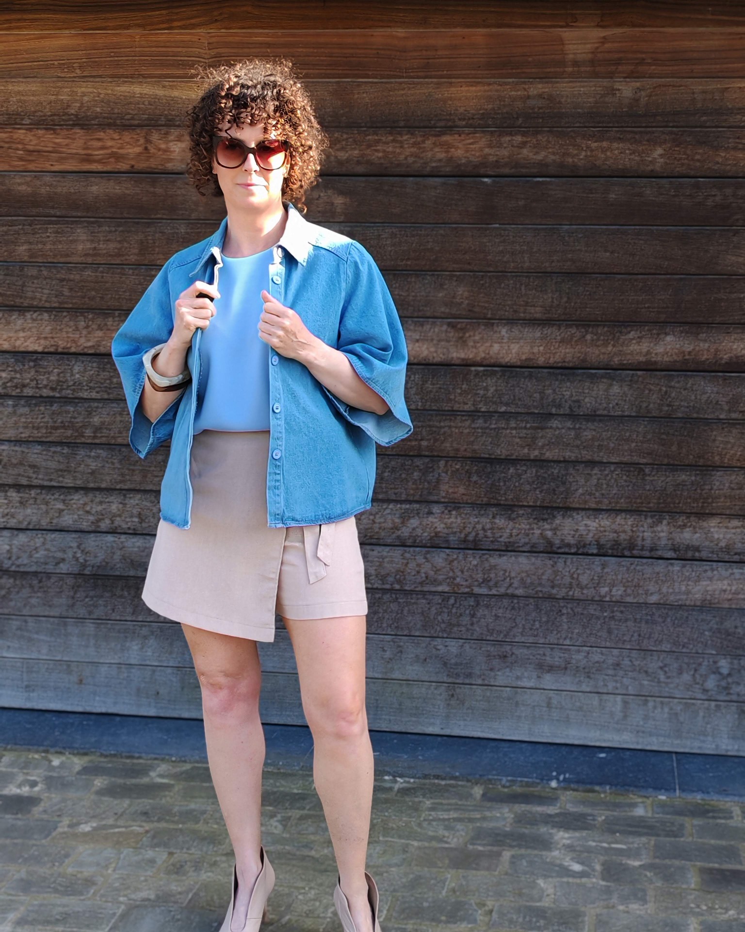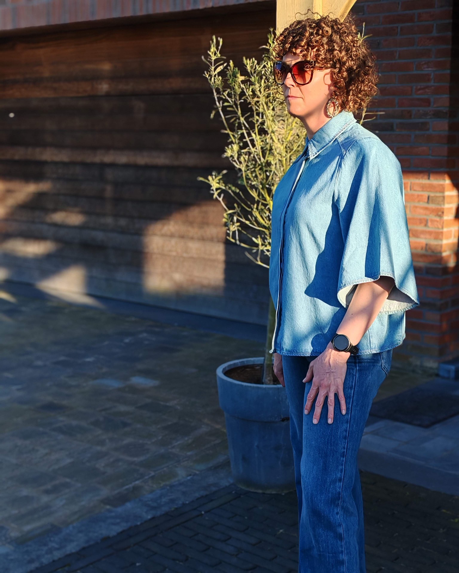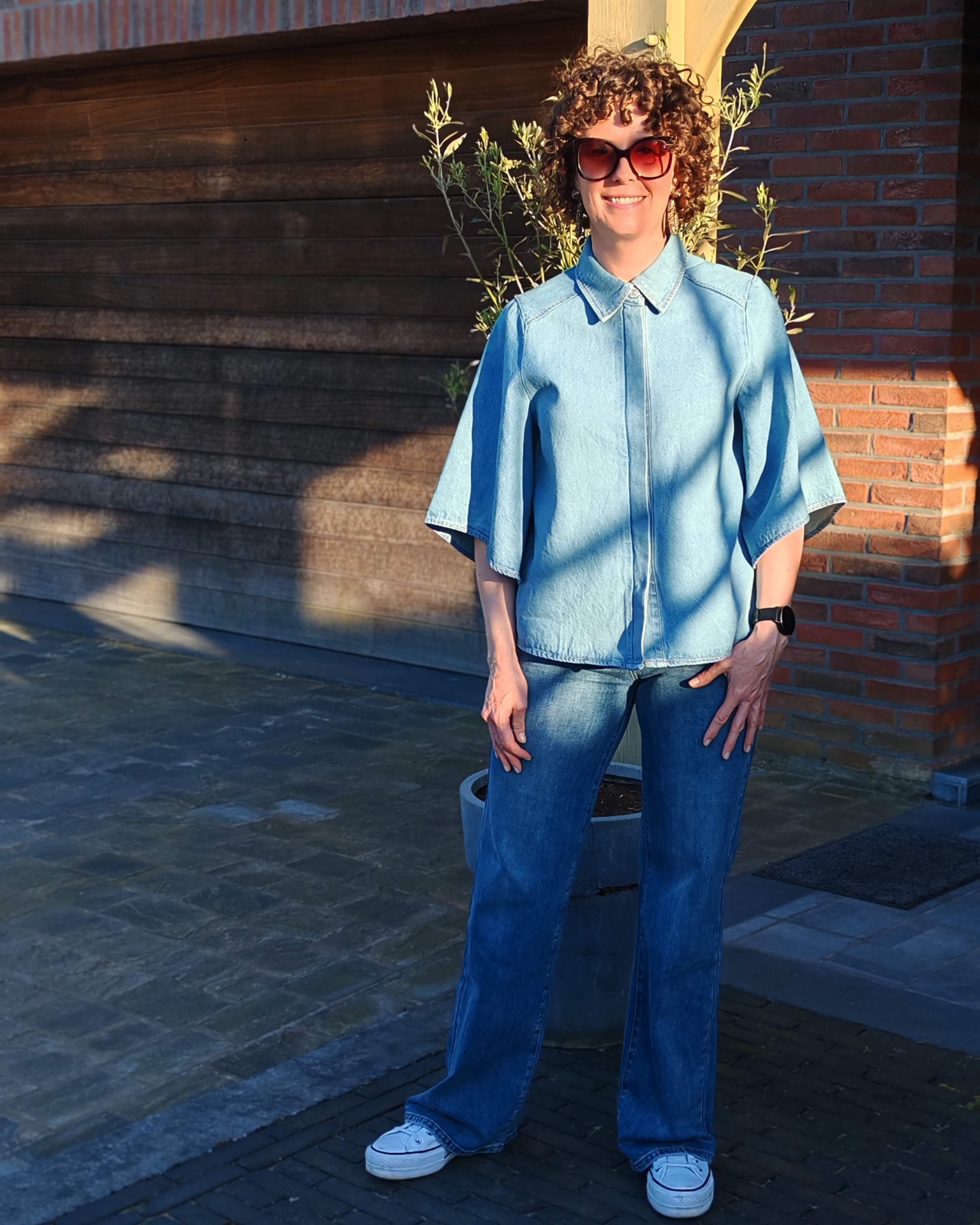 Tof jeanshemd maar net dat tikkeltje anders.Het hemd heeft verdoken knopen en een bredere korte mouw.Tof om te dragen op een jeans of als vestje op een jurkje of rok.