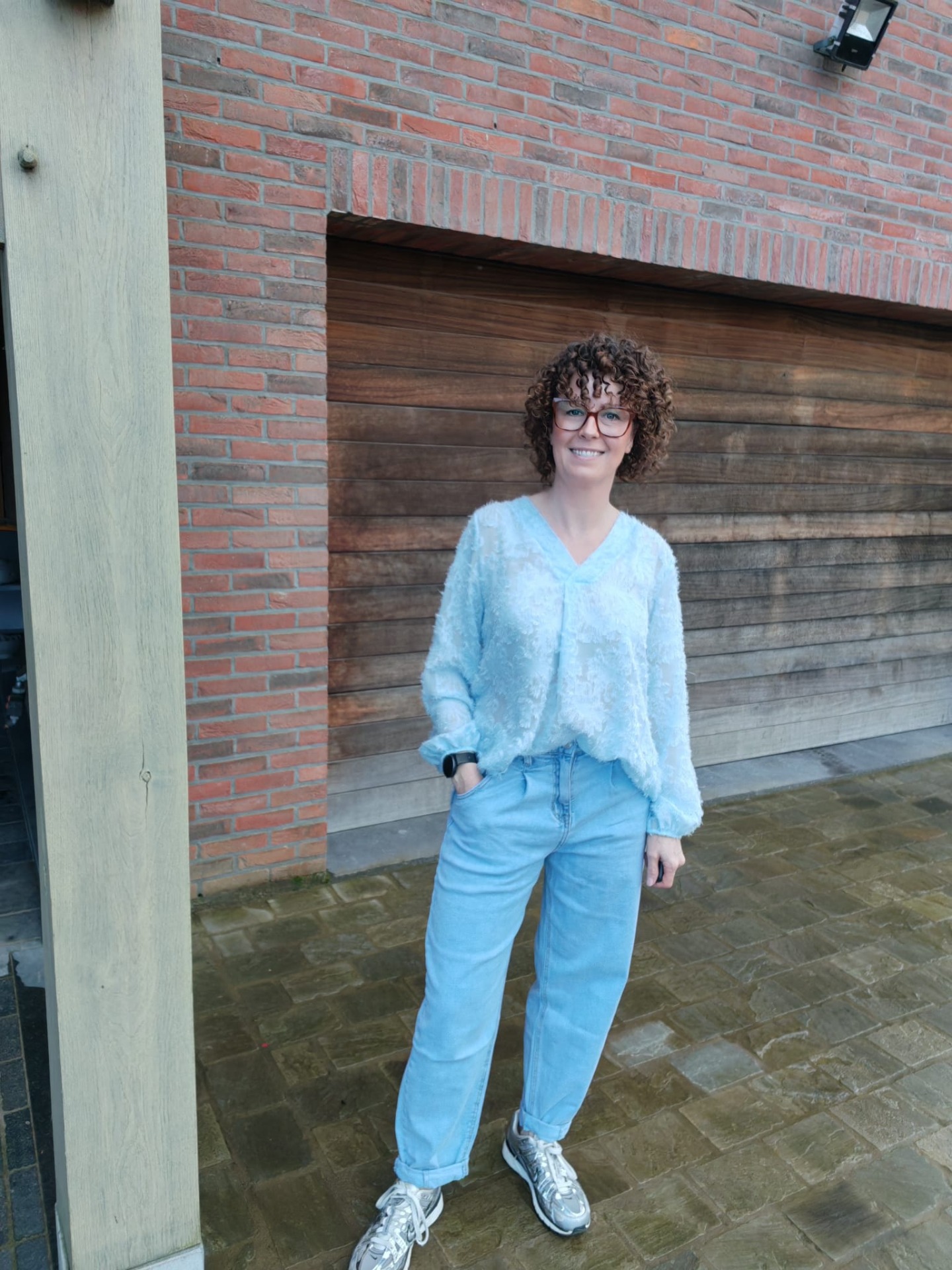 Toffe jeans "balloon" in een lichtblauwe kleur.