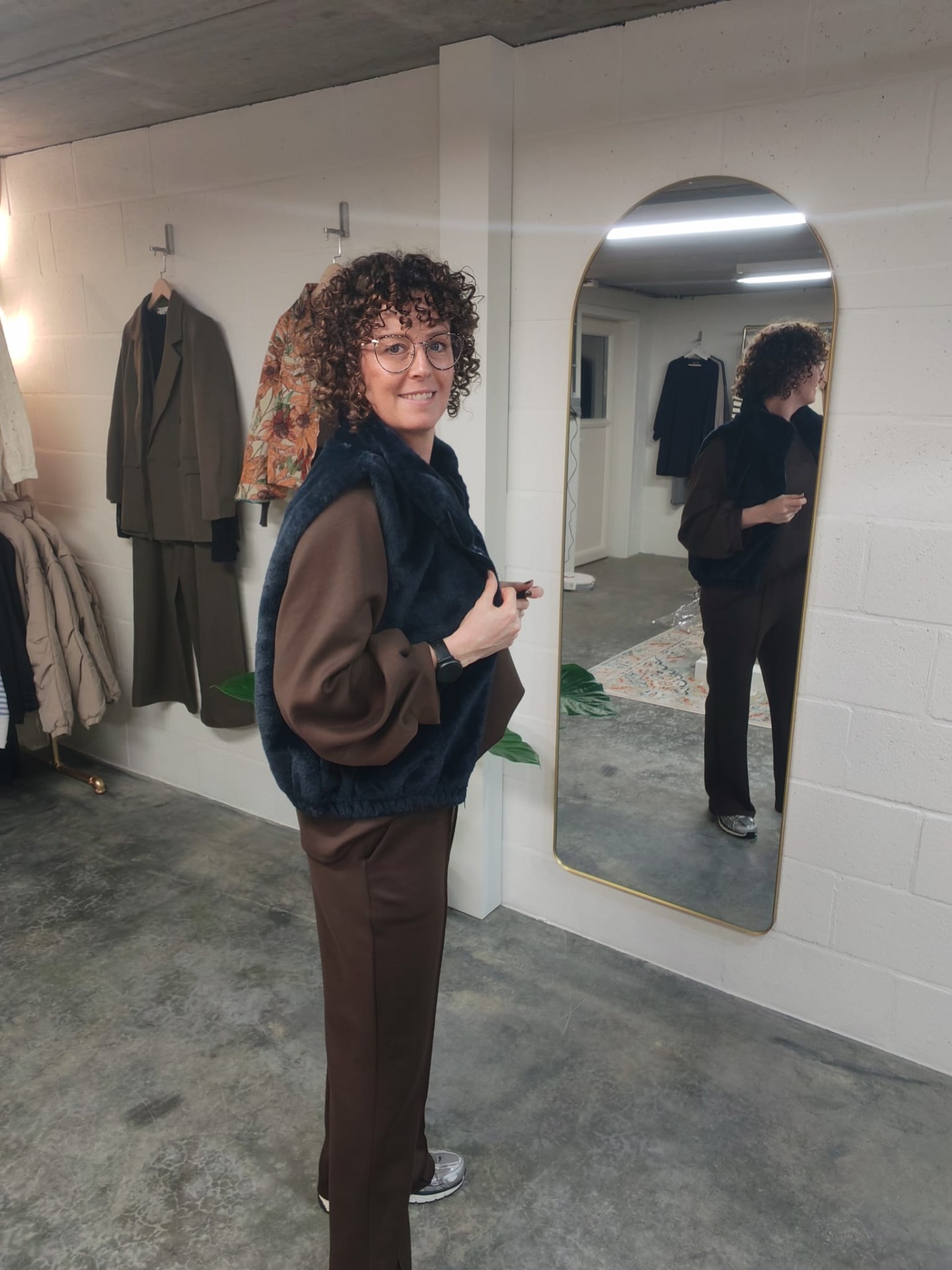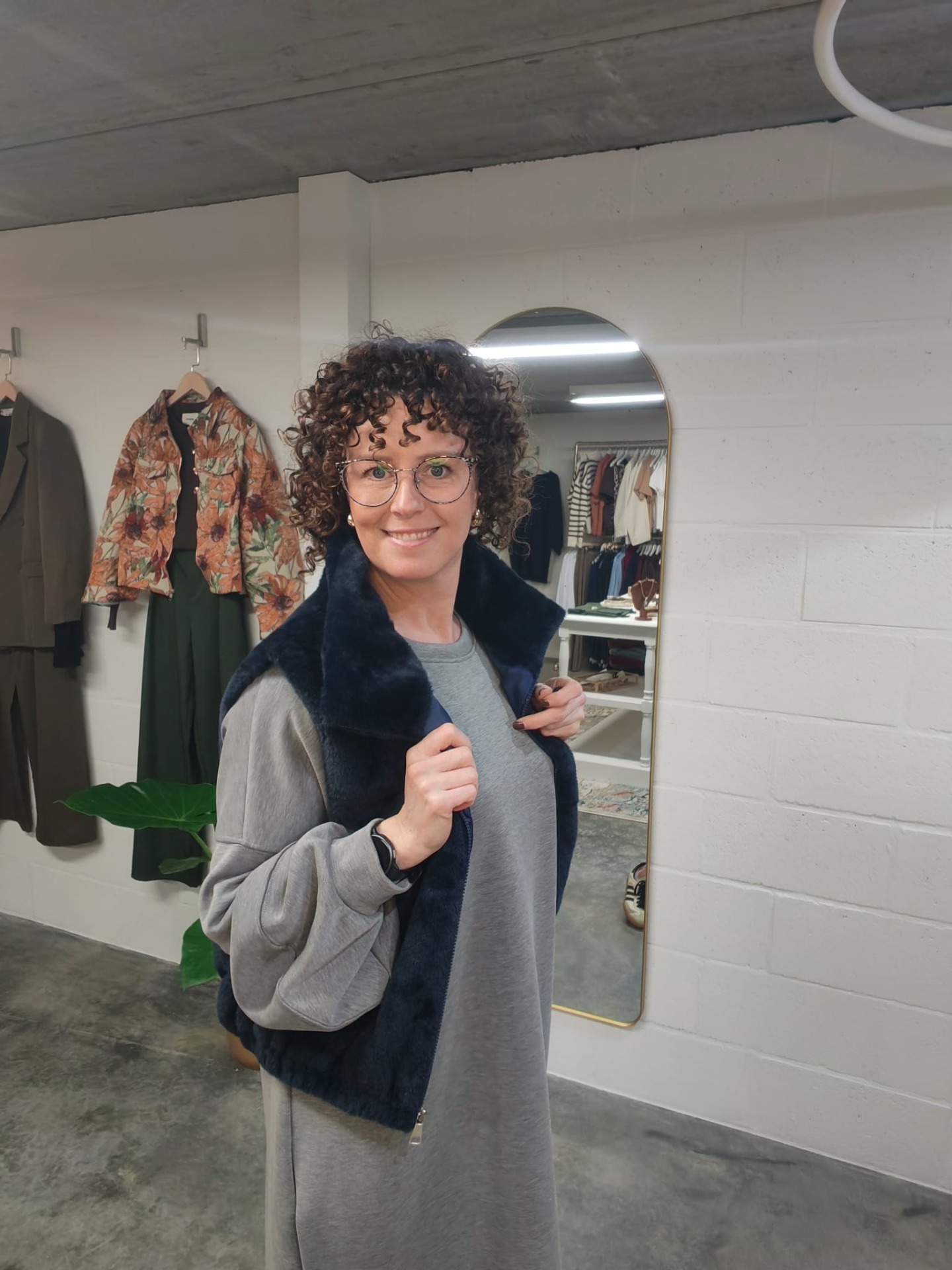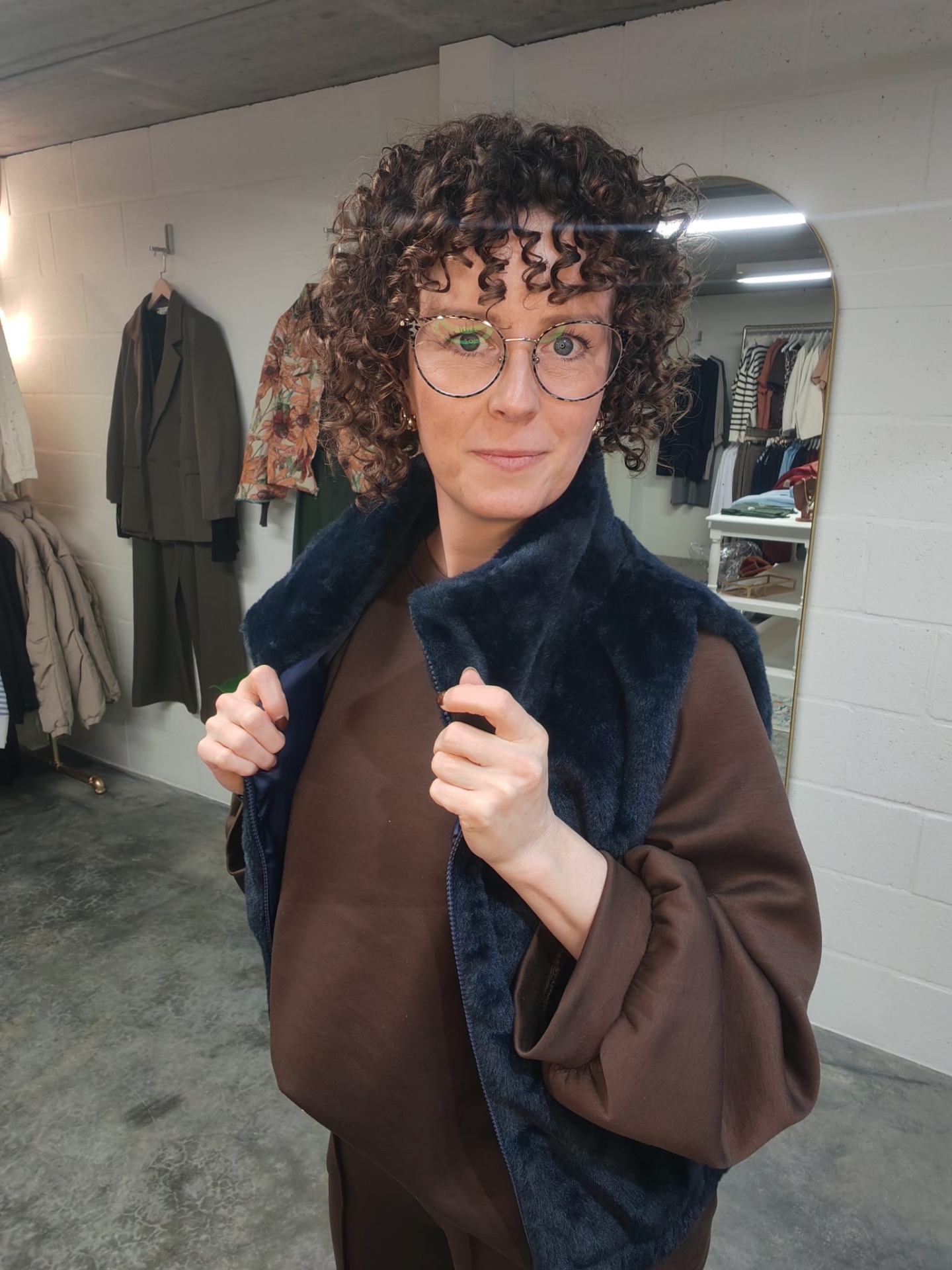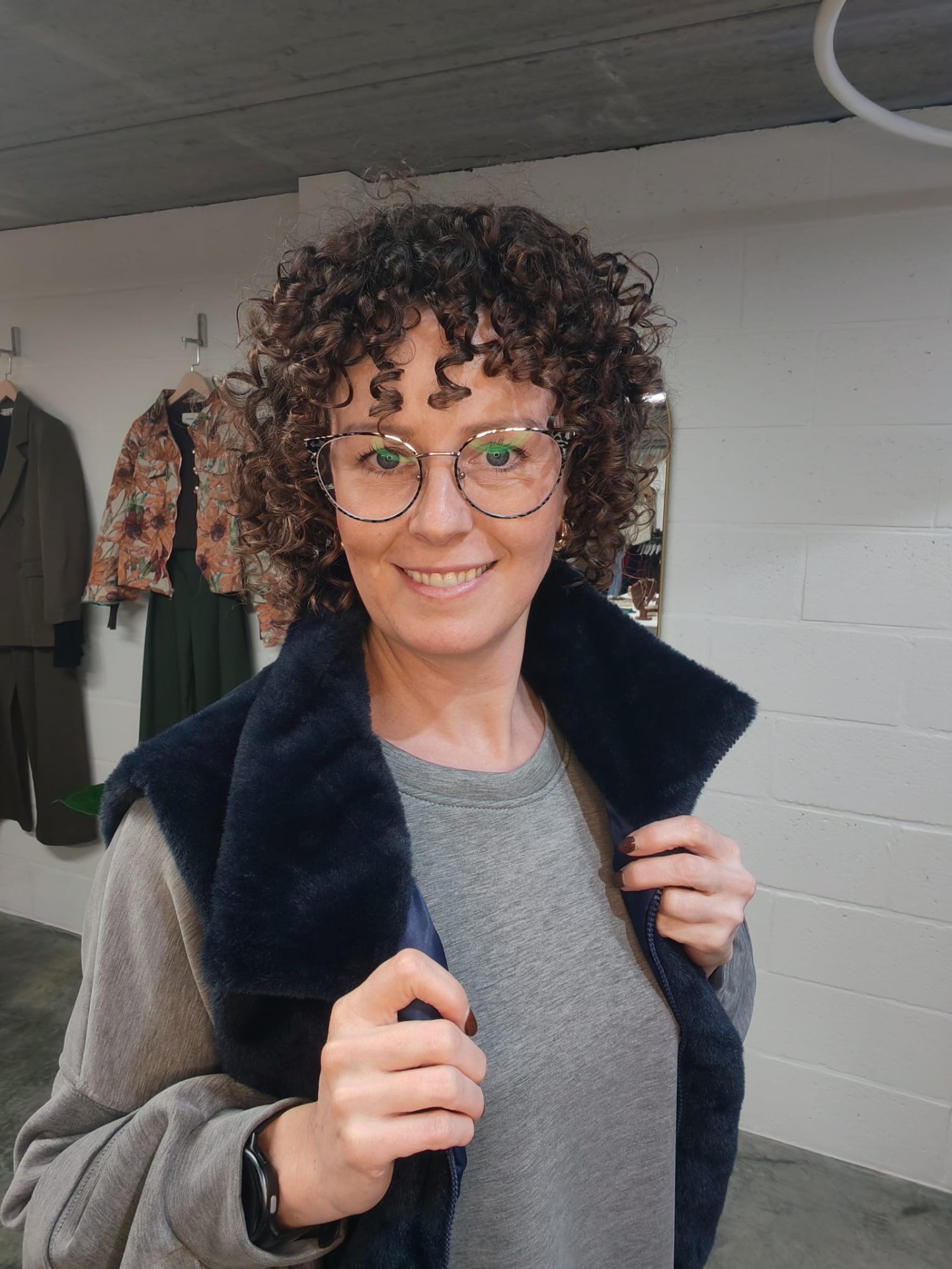 Leuk bontje dat voor extra warmte zorgt.Kan gecombineerd worden met een blouse, t-shirt, huispak of zelfs over een jasje.Hetty draagt het bontje hier met het lang grijs kleed en met ons bruin huispak.