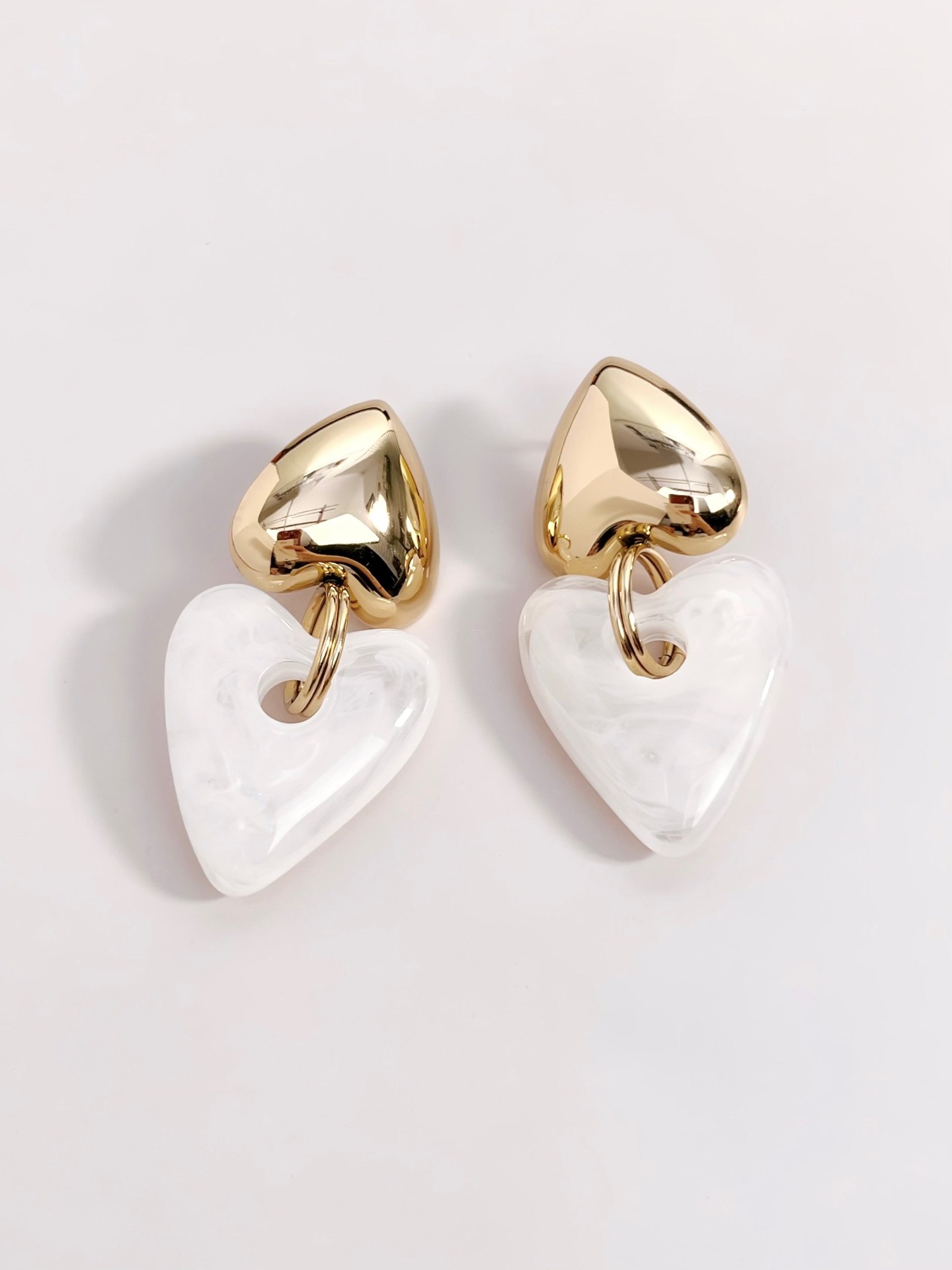 Double heart oorbellen wit