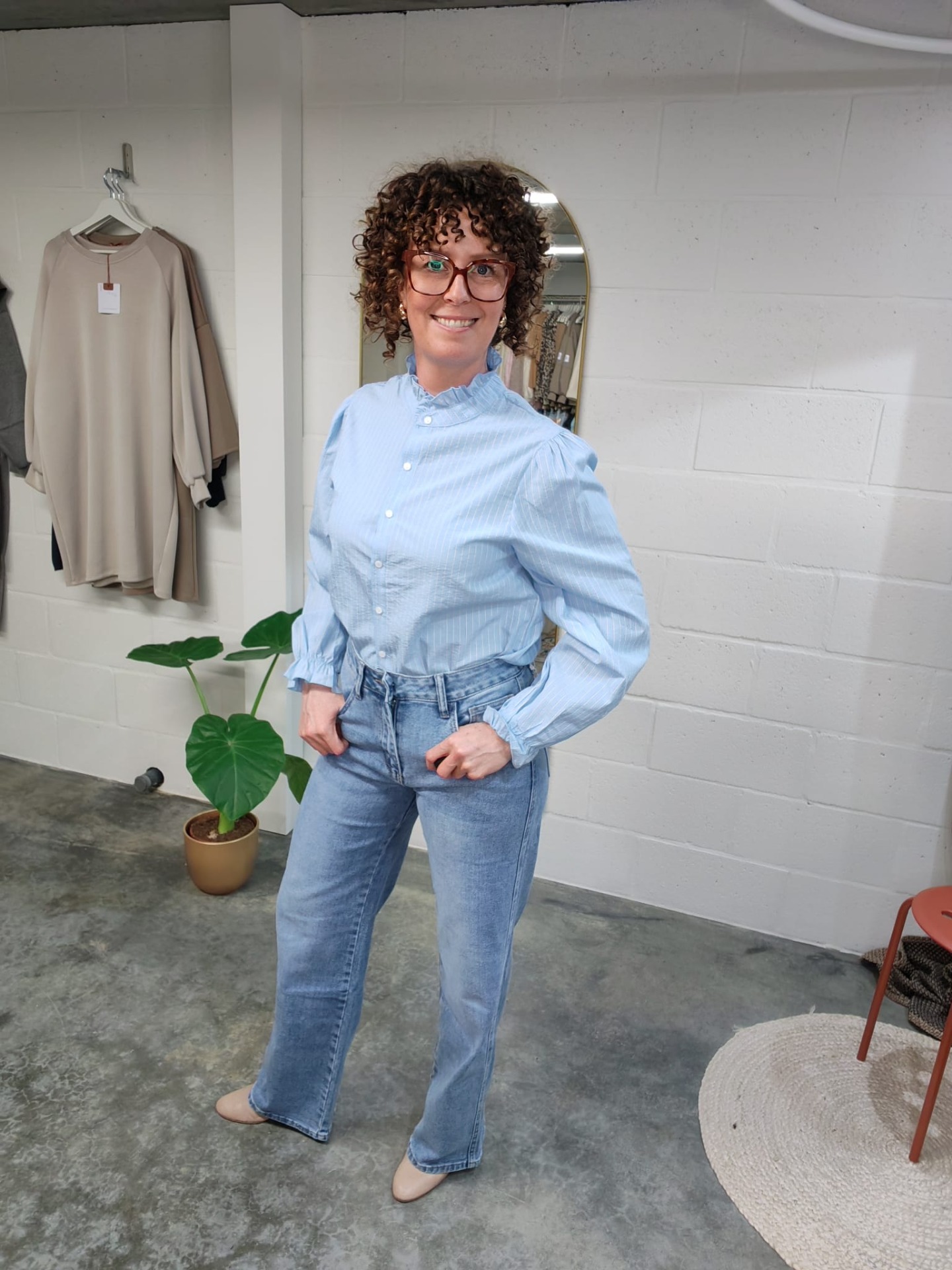 Leuke wide leg jeans in een mooie lichtblauwe kleur.Casual te combineren met een sneaker of met een hakje.