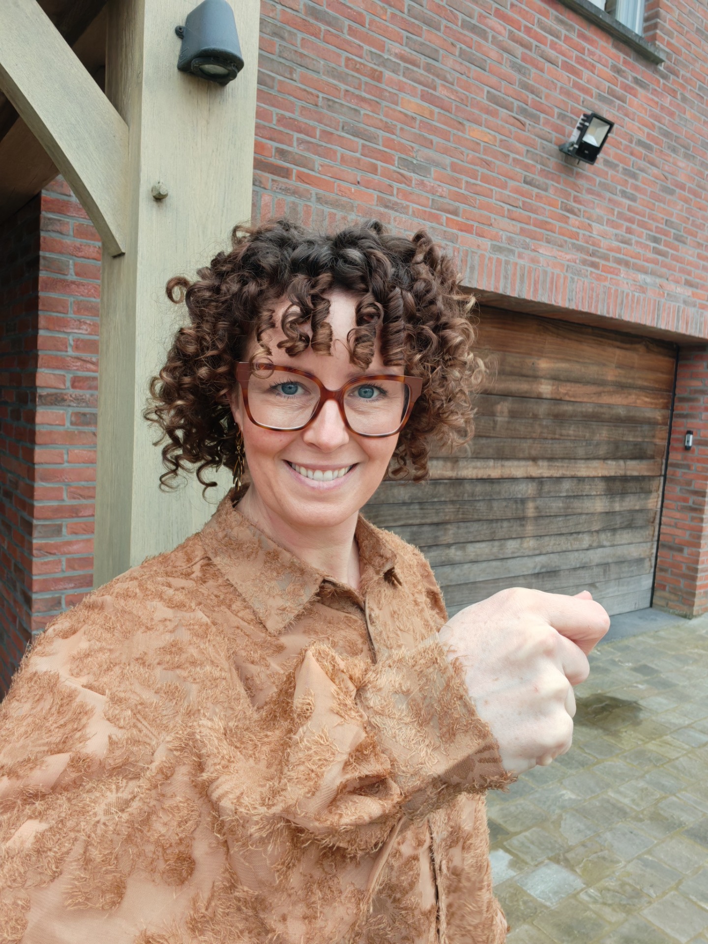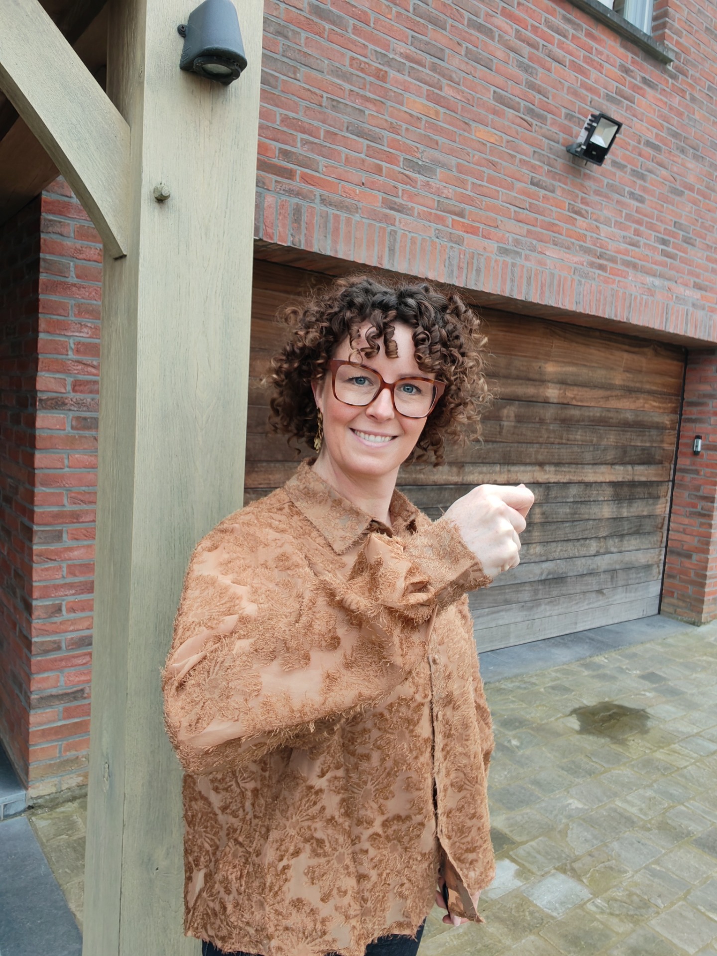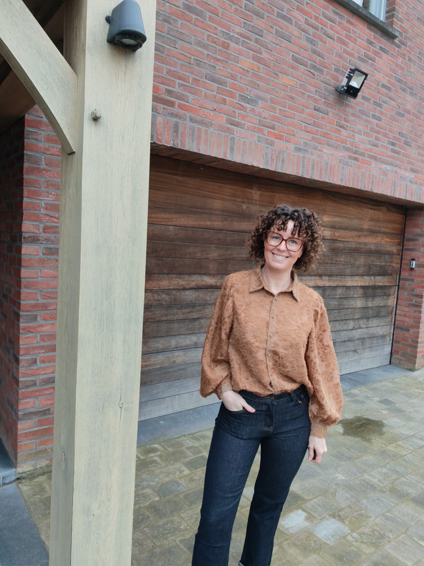 Blouse in een toon op toon print in een mooie camel kleur.Mooi om zo te dragen of te combineren met onze gebloemde blazer.Ook verkrijgbaar in een groene kleur.Hetty draagt hier SM
