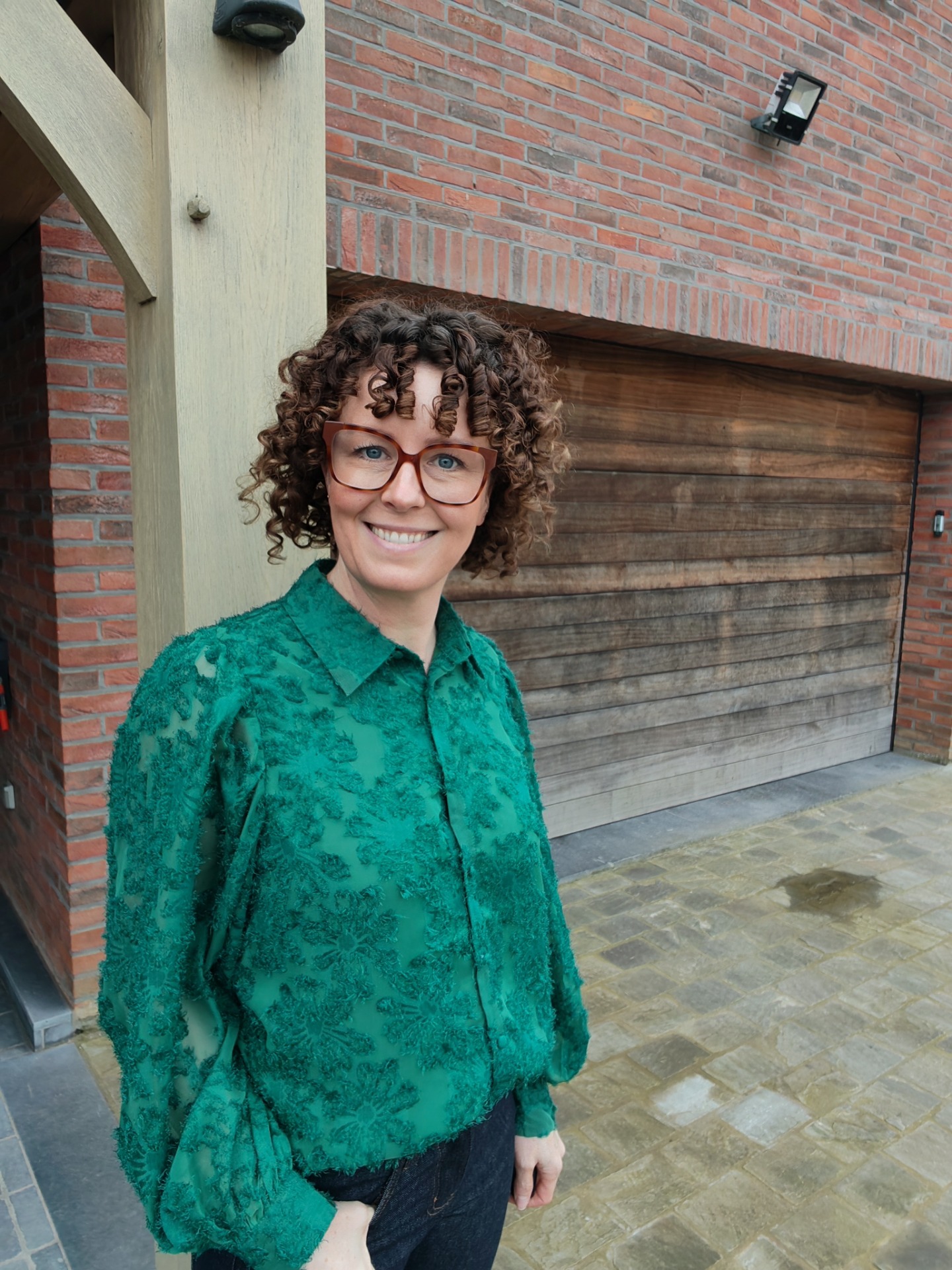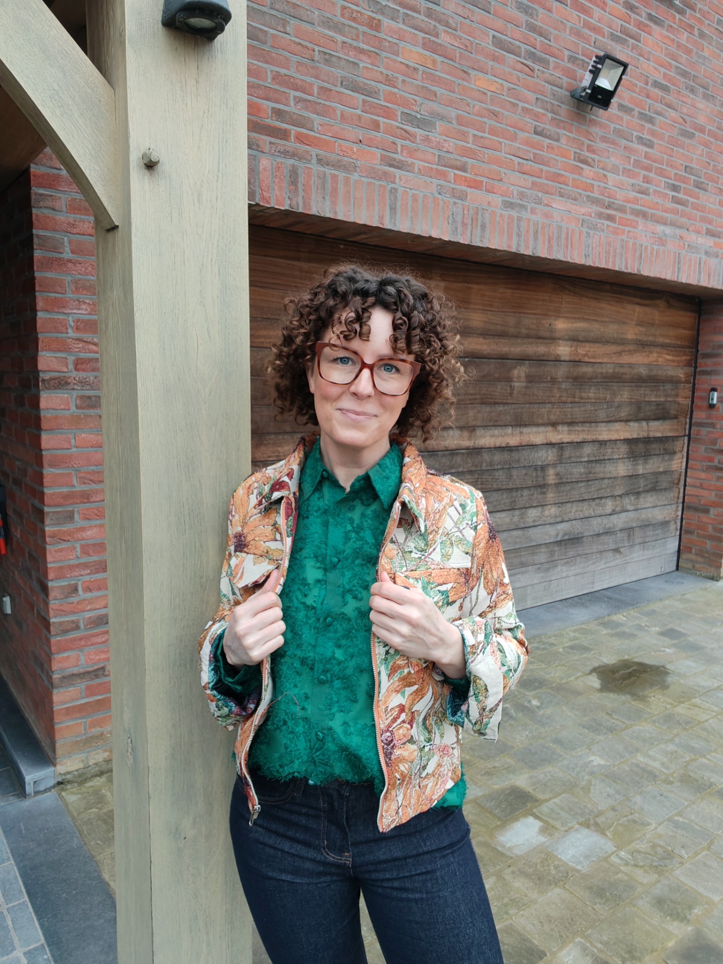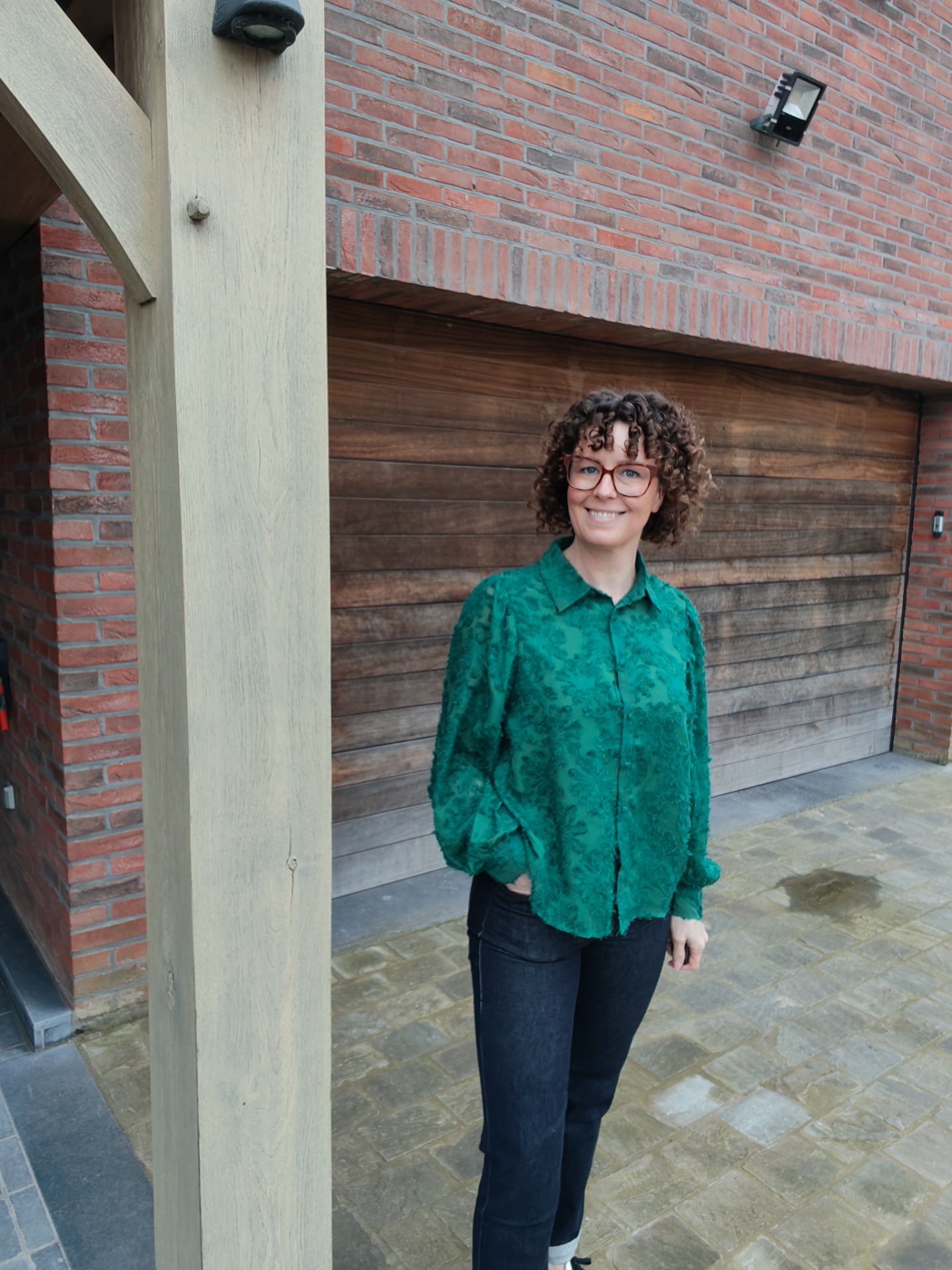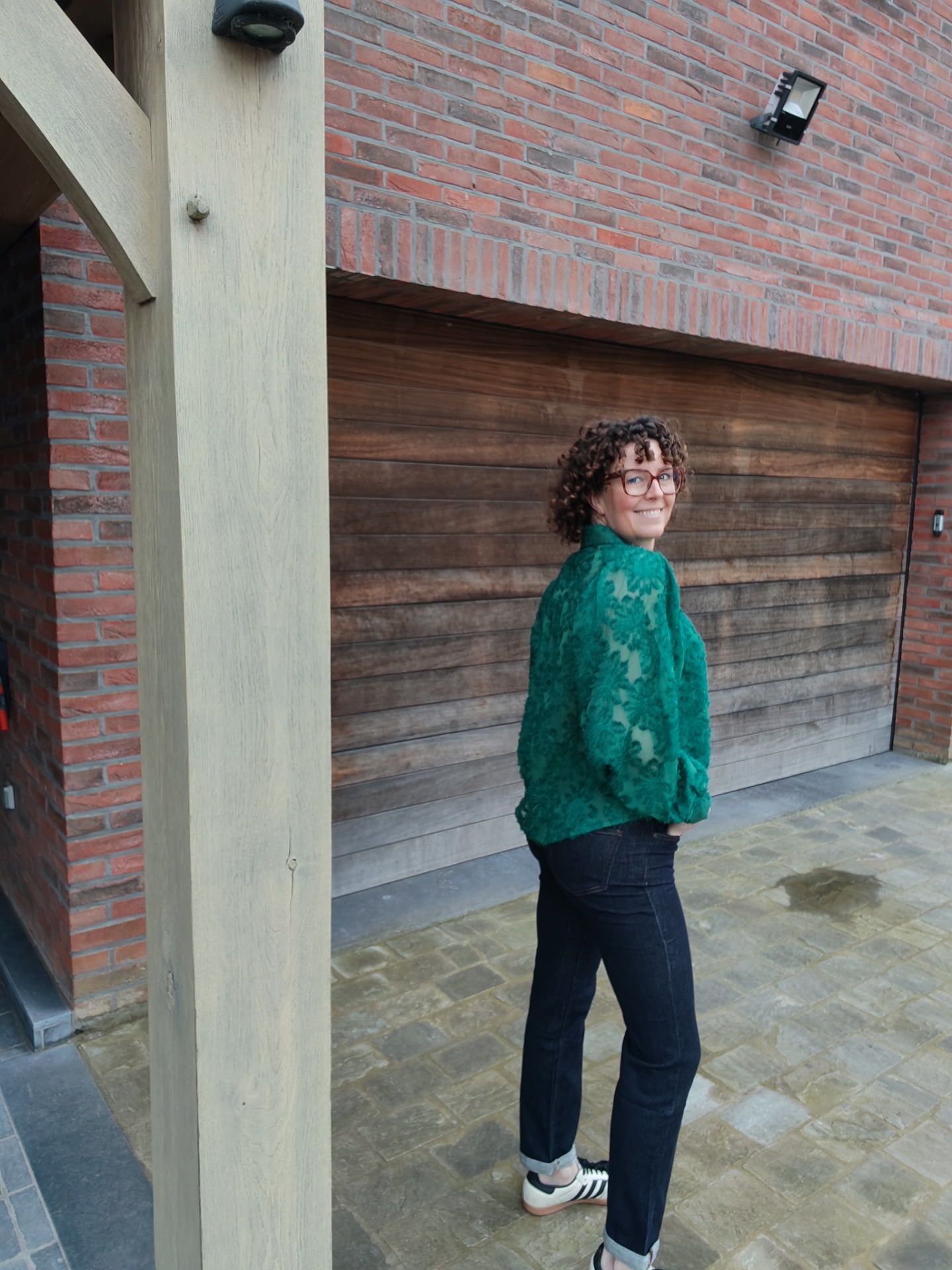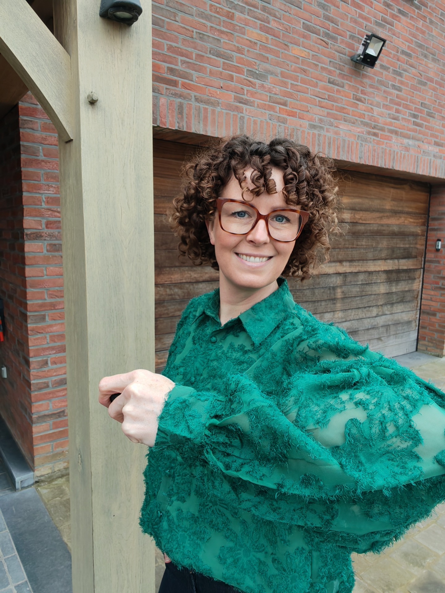 Blouse in een toon op toon print in een mooie groene kleur.Mooi om zo te dragen of te combineren met onze gebloemde blazer.Ook verkrijgbaar in een camel kleur.Hetty draagt hier SM