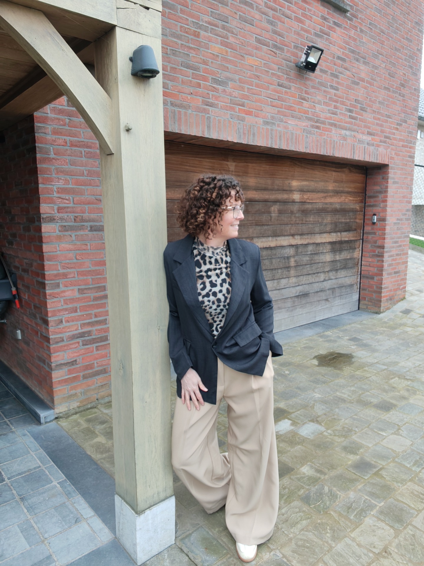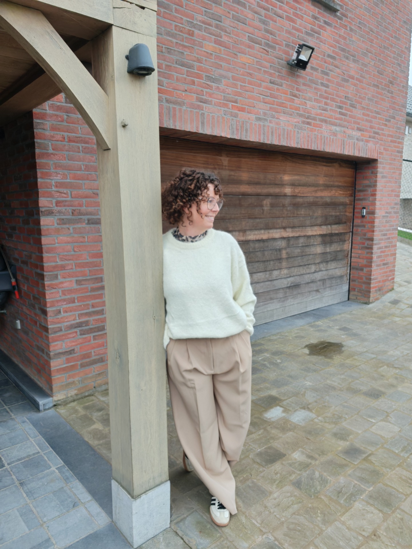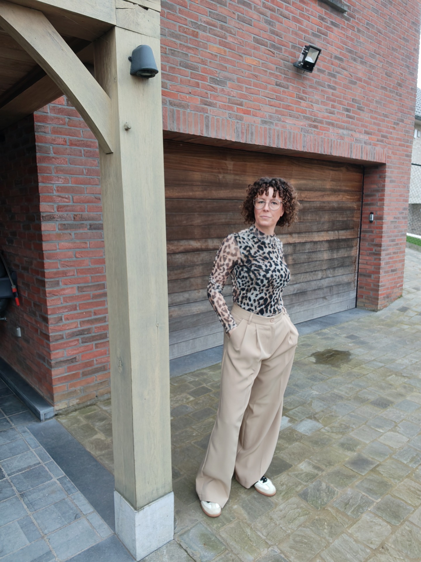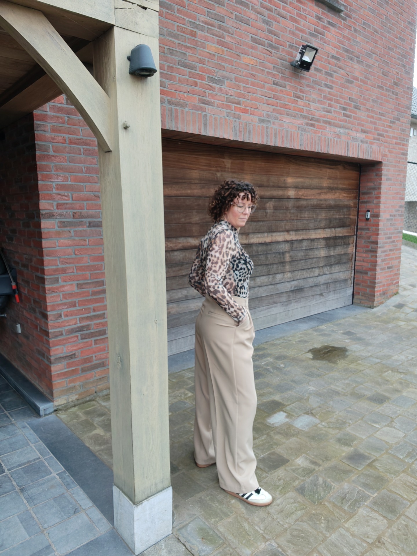 Leuke en losse broek in een beige kleur.Deze broek heeft plooitjes vooraan en 2 steekzakken
