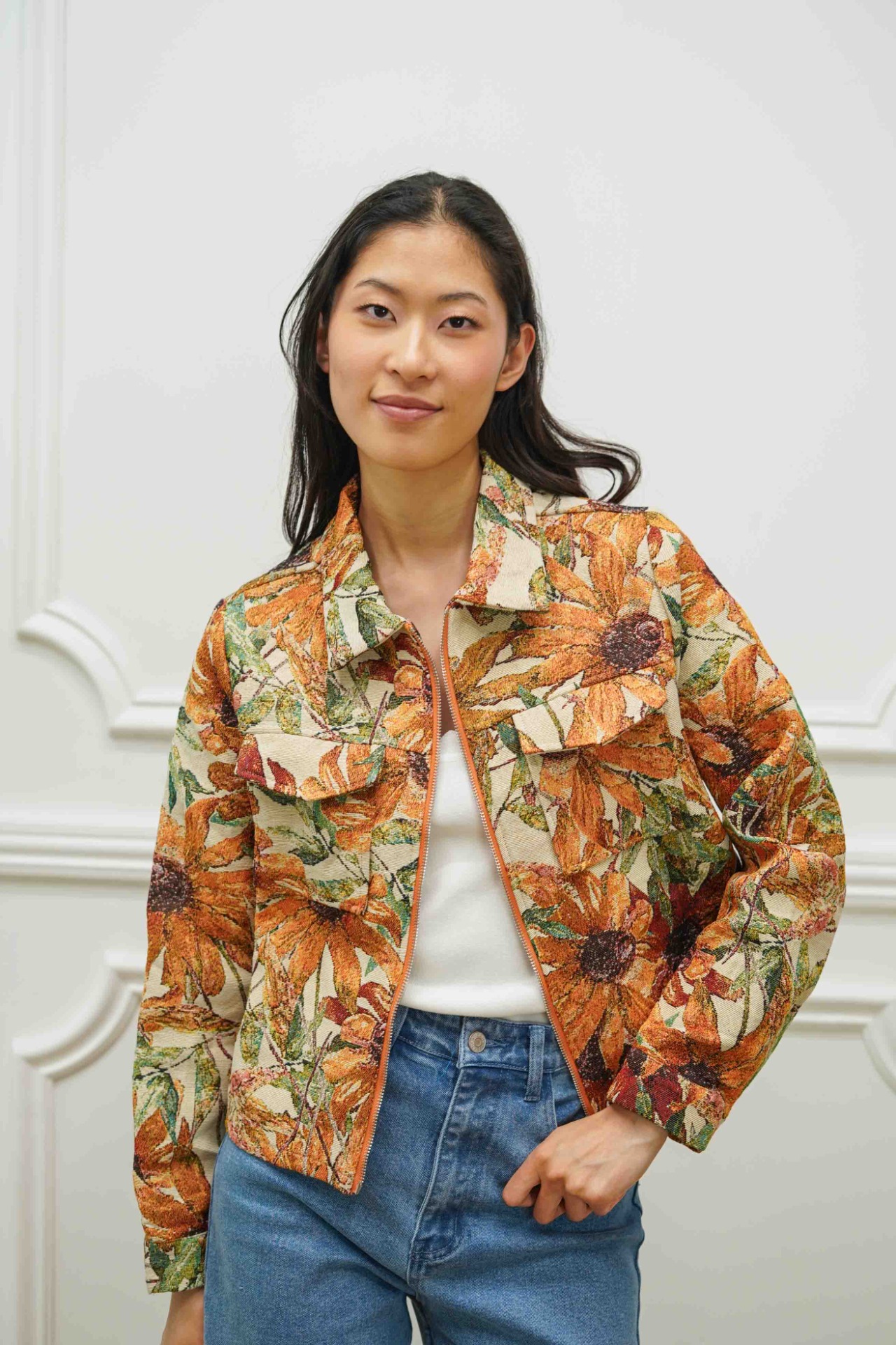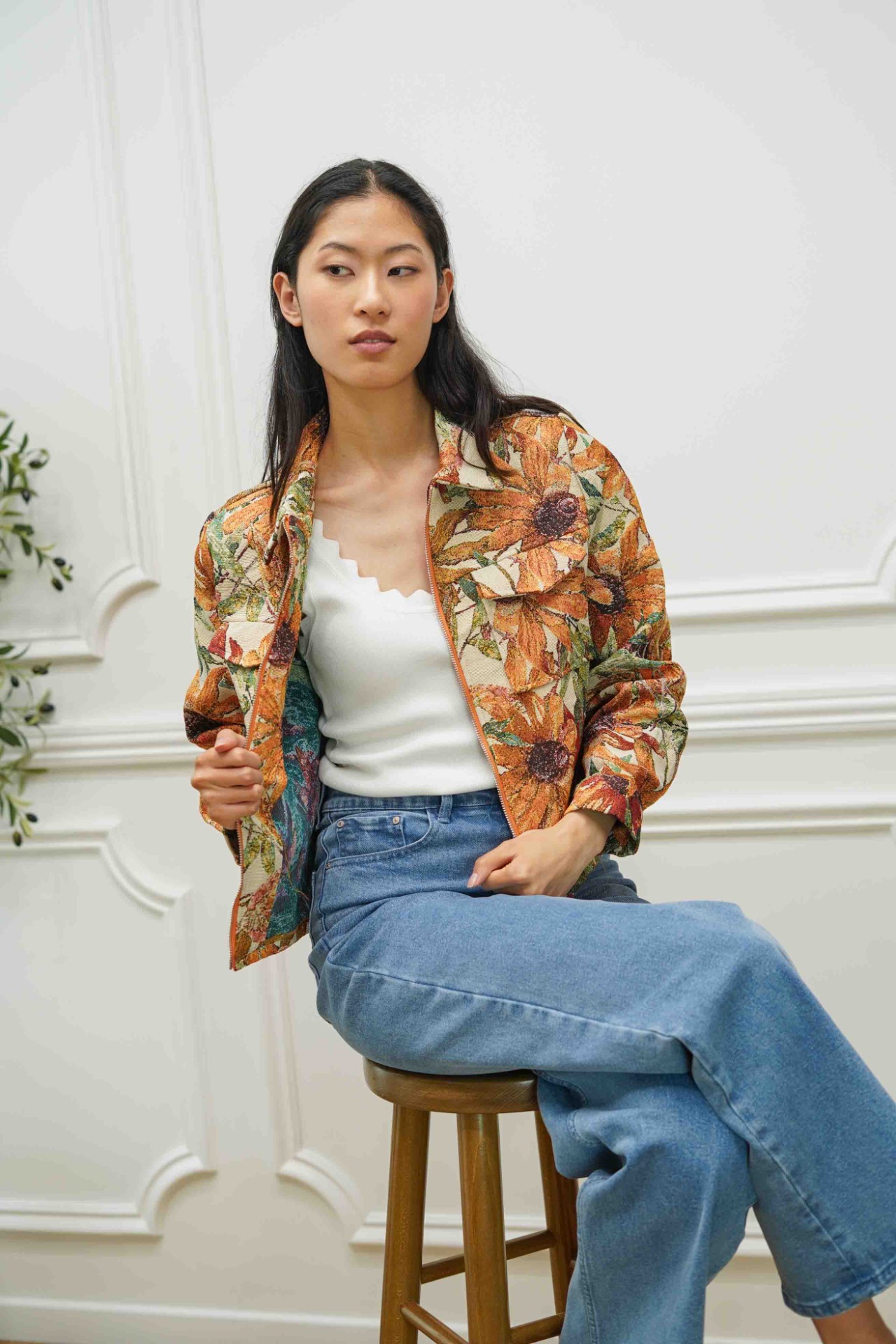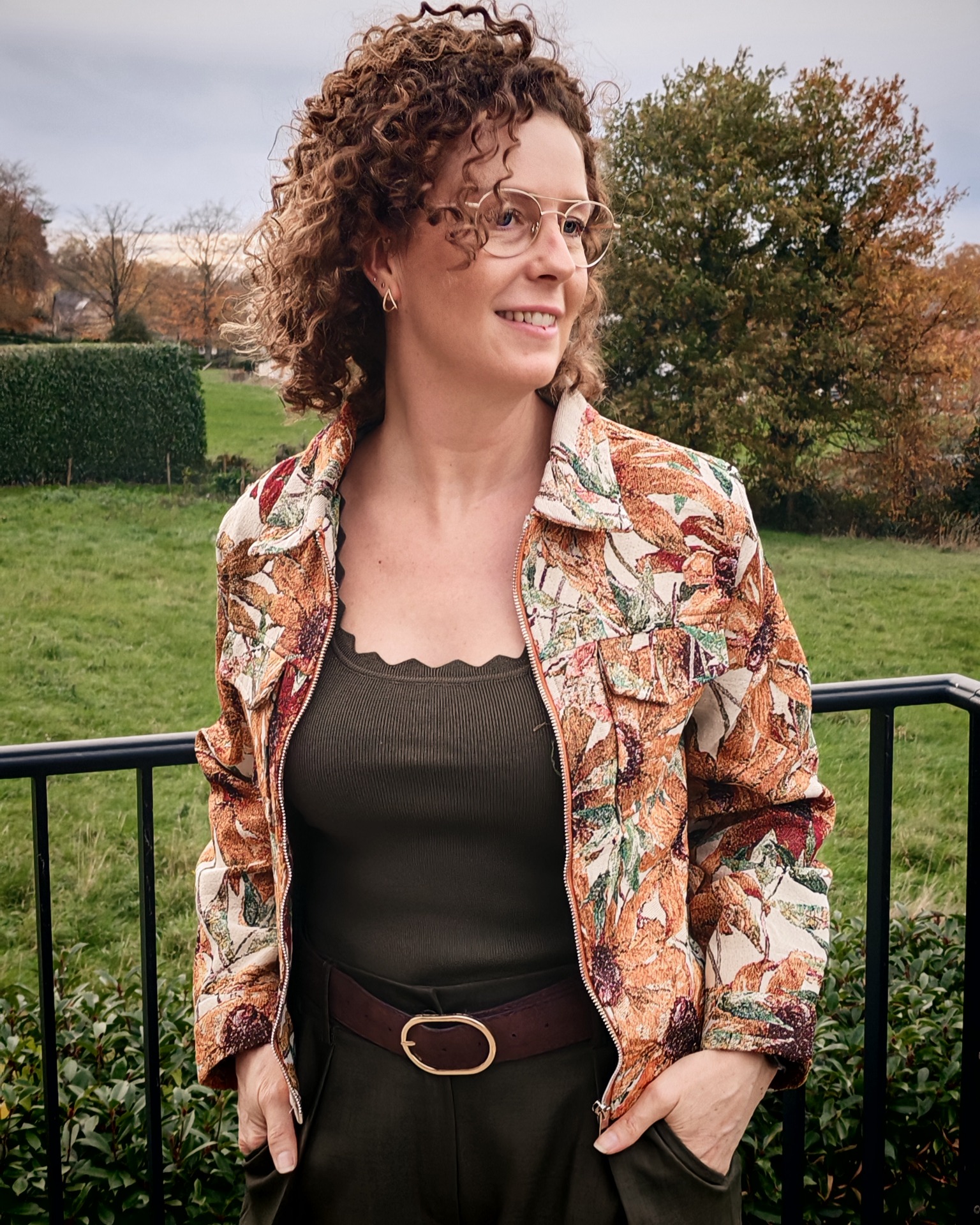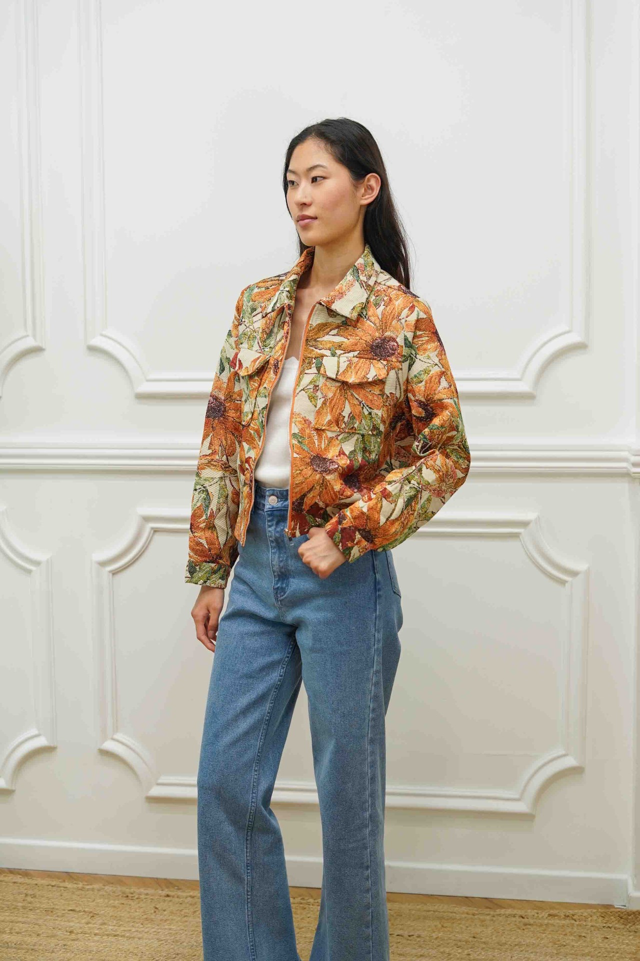 Korte blazer met bloemenmotief en 2 zakjes op de borstzakken.Combineer deze met een jeans of onze prachtige kaki broek en kaki top.Hetty draagt maat SM