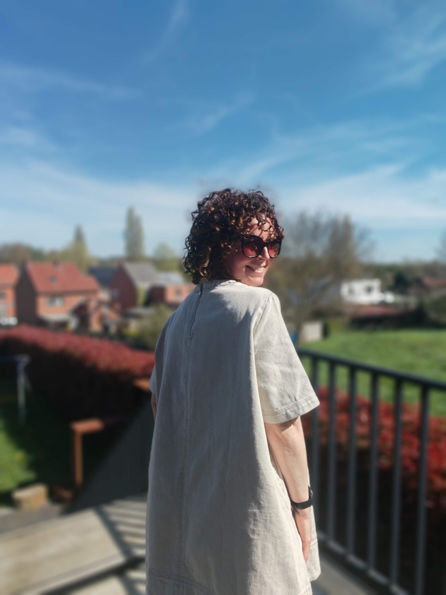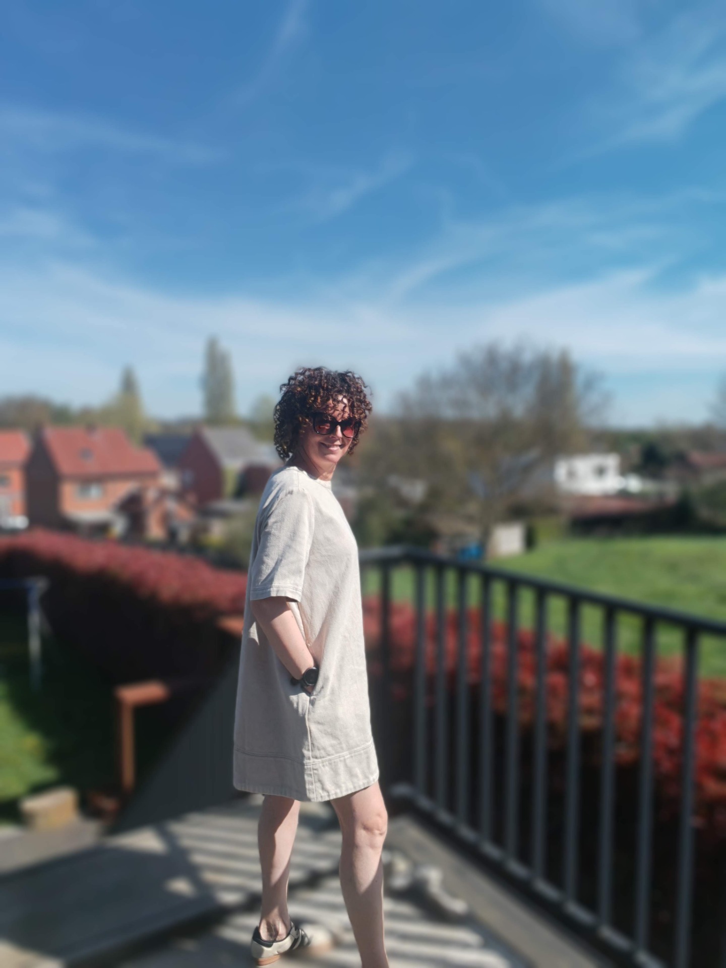 Tijdloze jurk met korte mouwen in een beige kleur.Draag hem nu met een laarsje en in de zomer met een leuke slipper.Werk eventueel af met enkele leuke juwelen.Verkrijgbaar in S/M/L