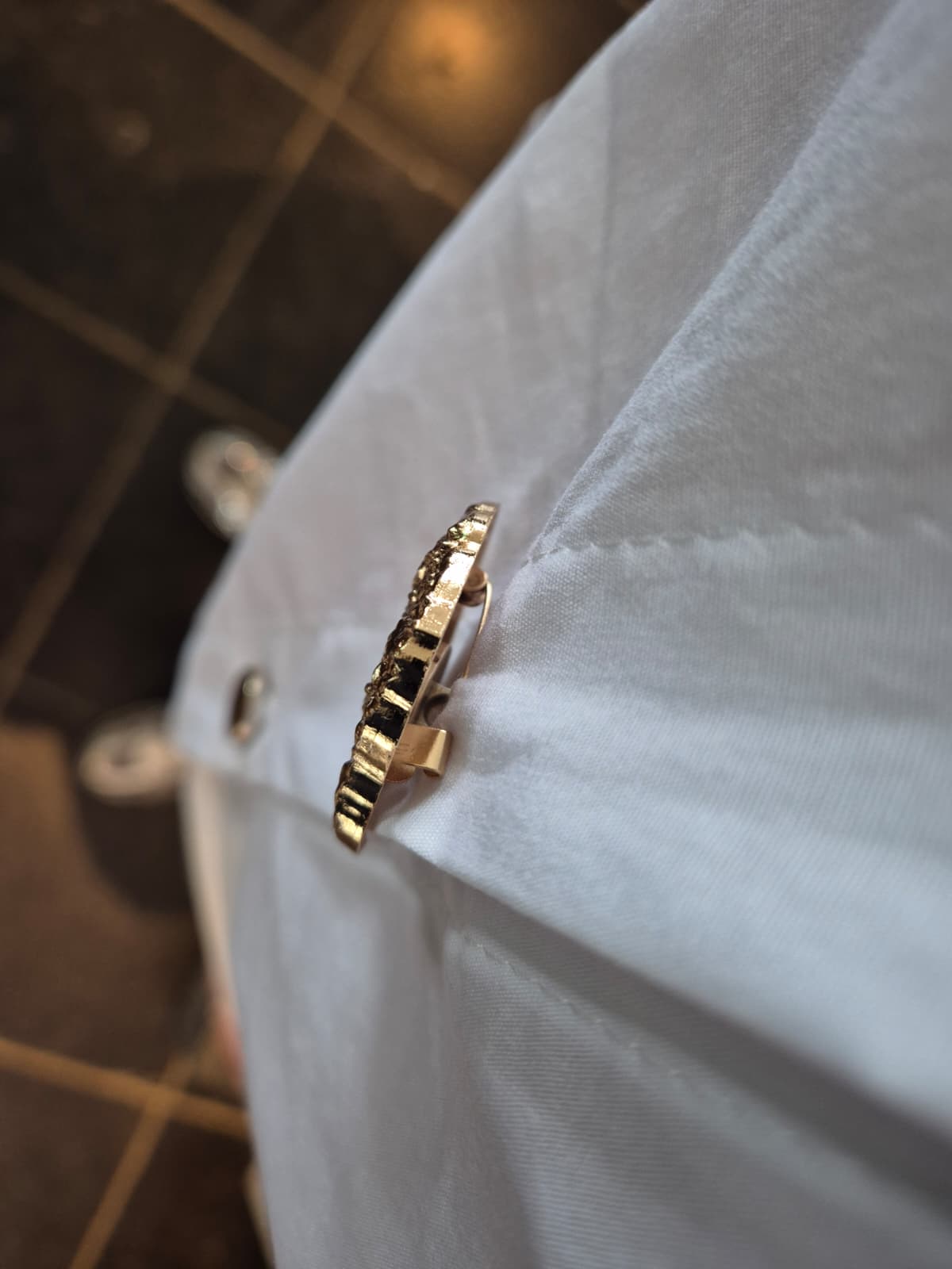 De speciale broches zijn verwijderbaar, waardoor je dit hemd ook eenvoudig onder een trui of vest kan dragen.