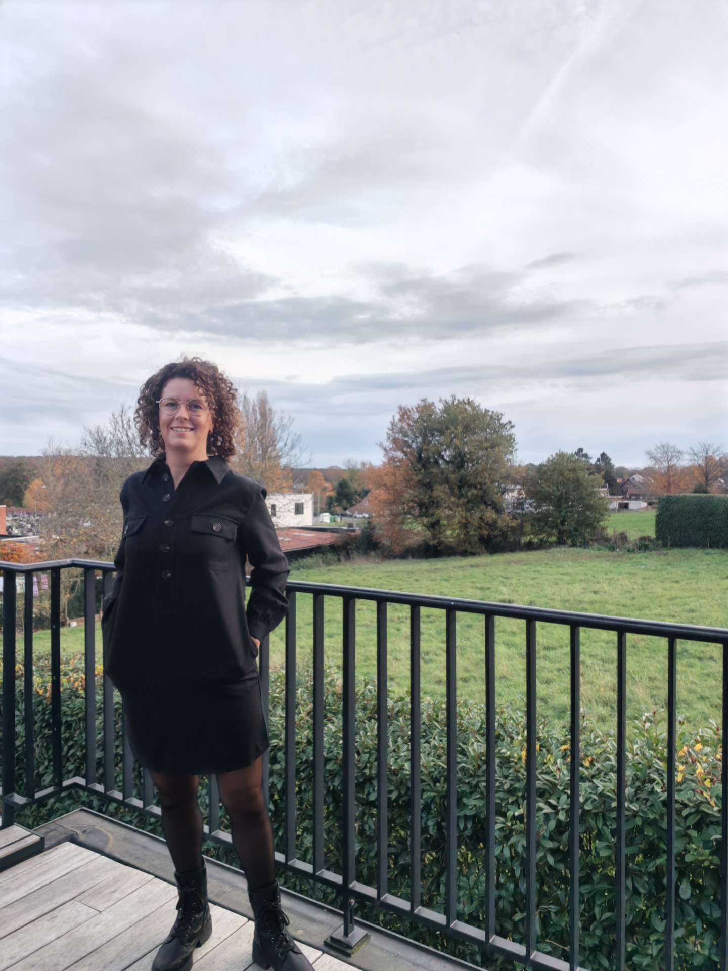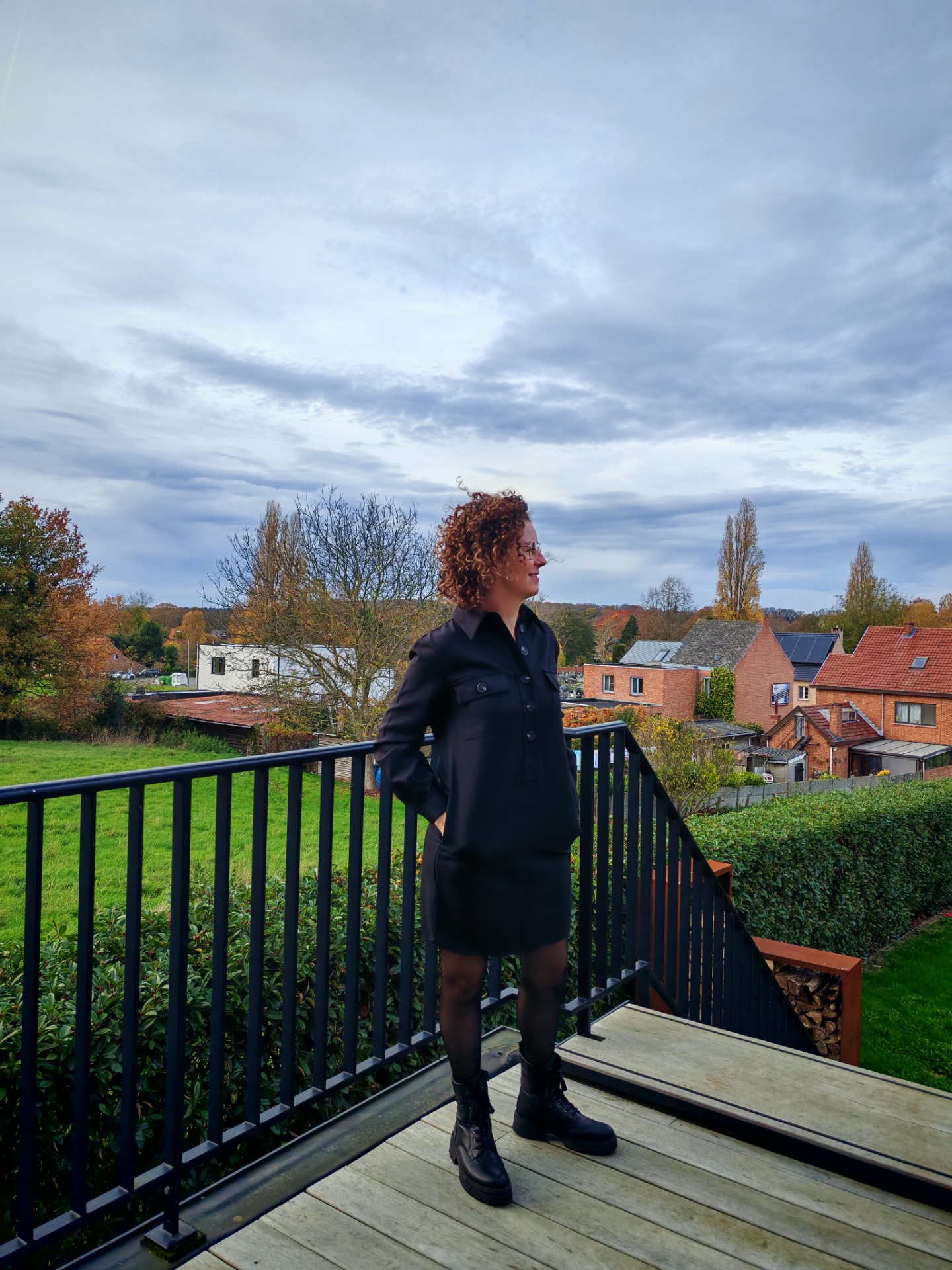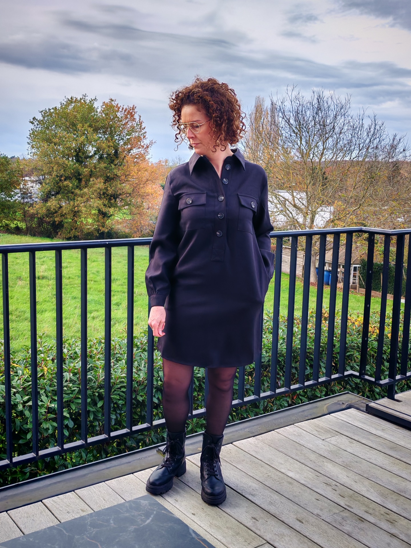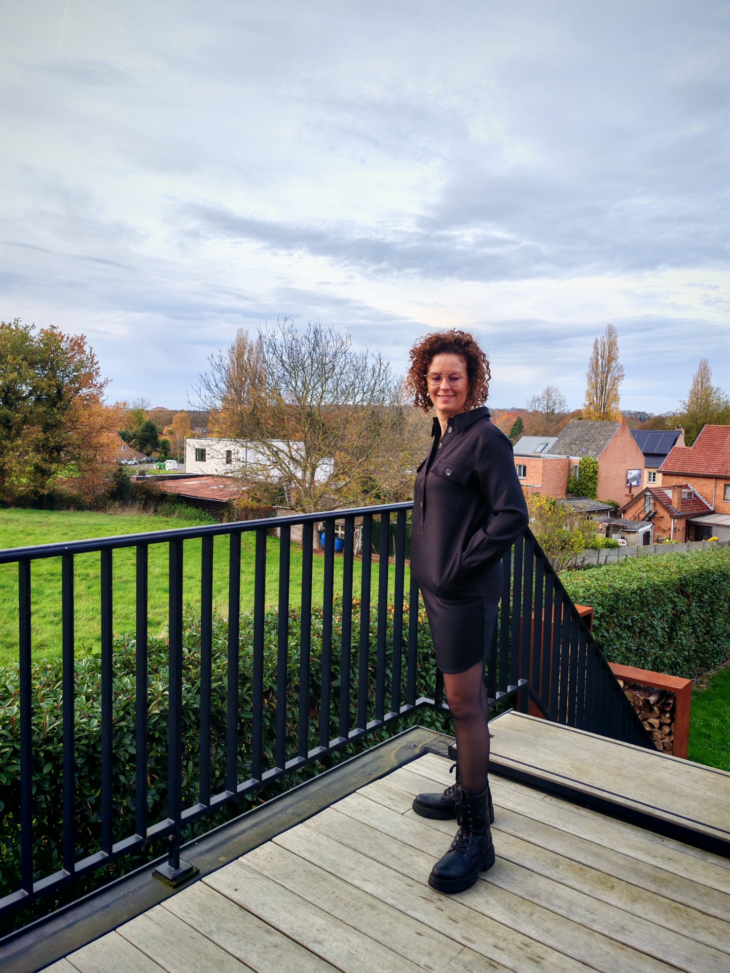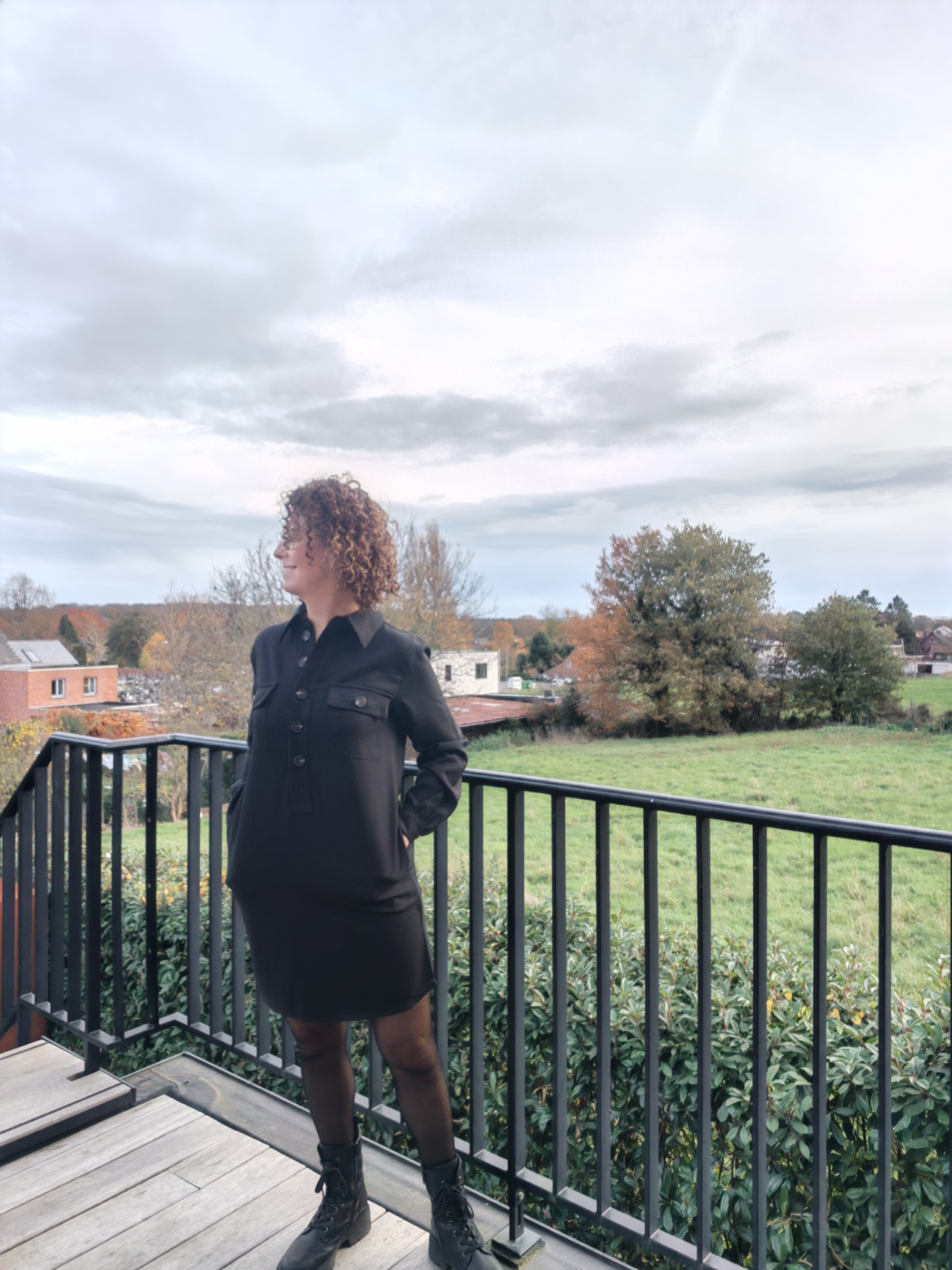 Leuk hemdjurk met knoopjes en 2 borstzakken.De jurk heeft zakken aan de zijkant.Hetty is 1m65 en draagt S.