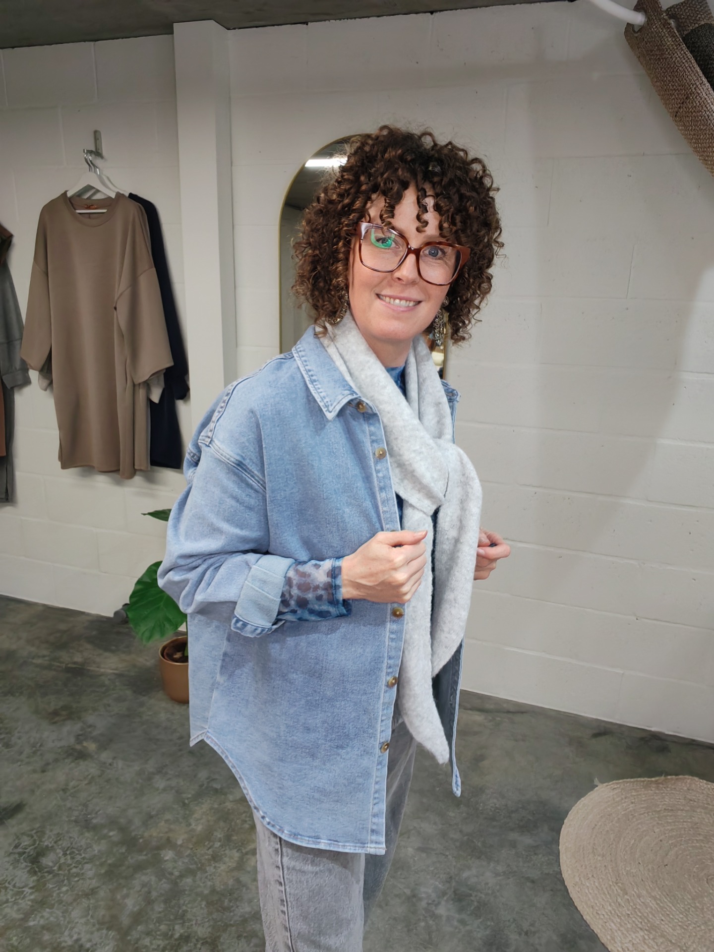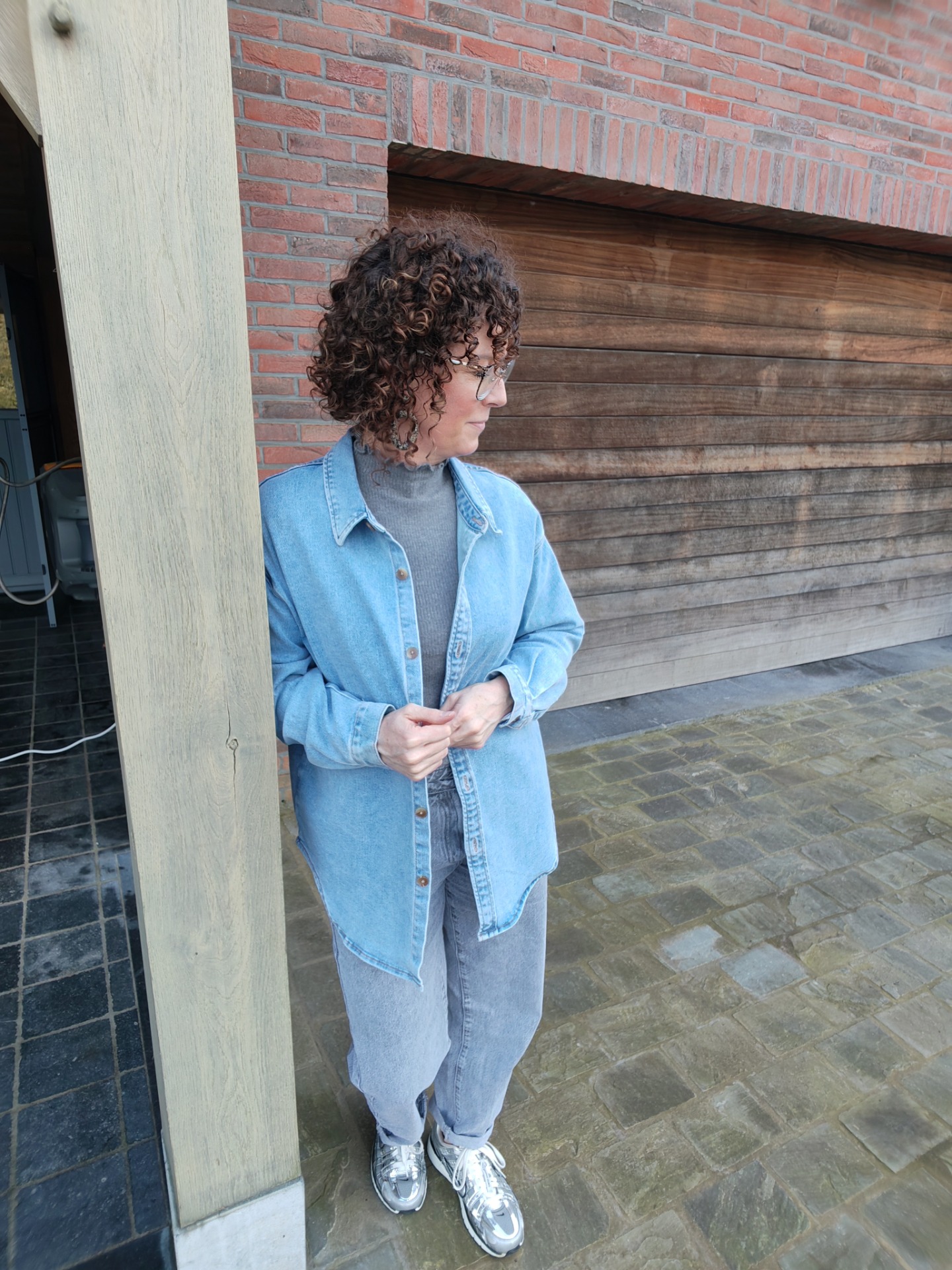 Een jeanshemd is een kledingstuk dat iedereen in haar kast moet hebben.Draag dit onder een trui, open over een top of als vest.Eindeloos te combineren.