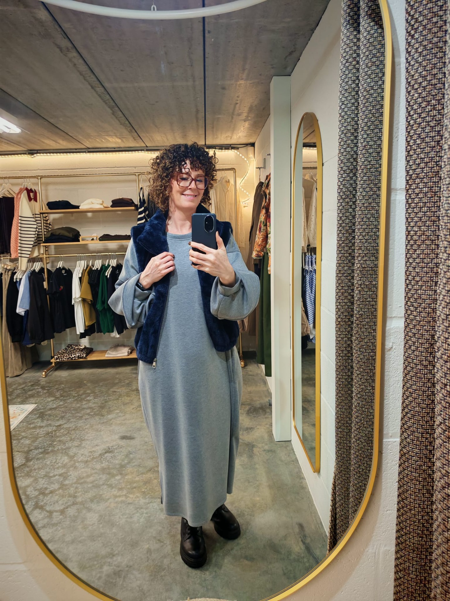 De jurk wordt hier gecombineerd met ons donkerblauw bontje.