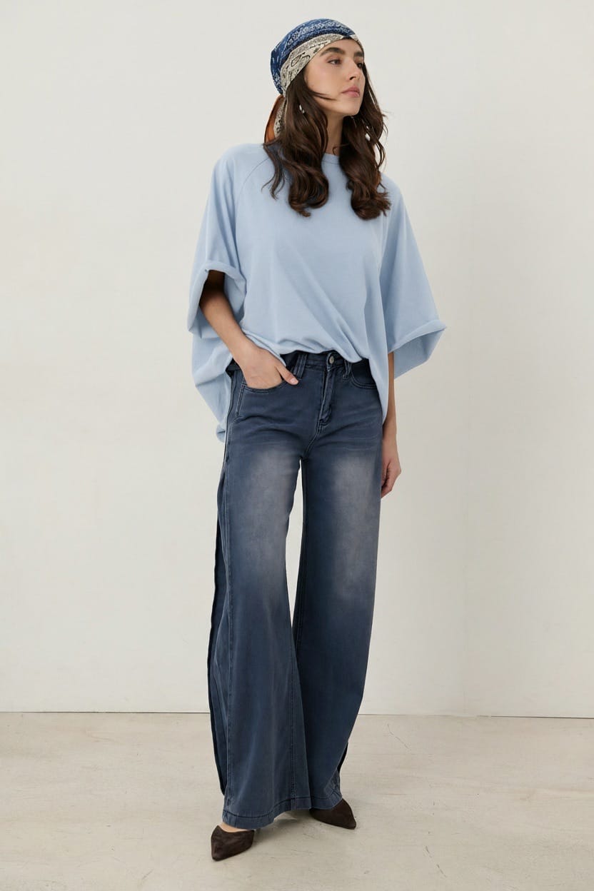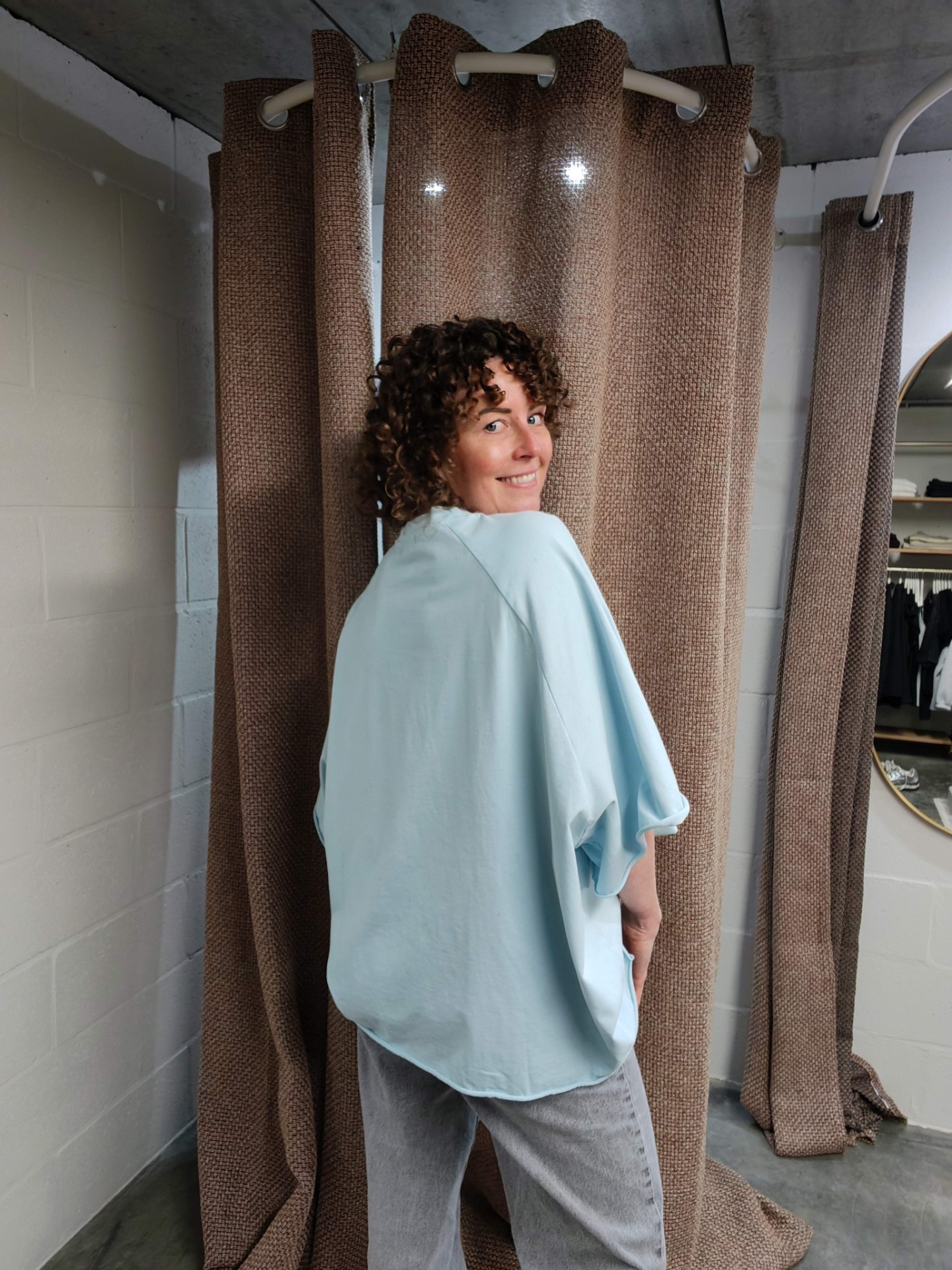 Oversized shirt in een mooie lichtblauw kleur.Draag hem los op een broek of accentueer jouw taille met een riempje.Ook tof voor over jouw bikini in de zomer.