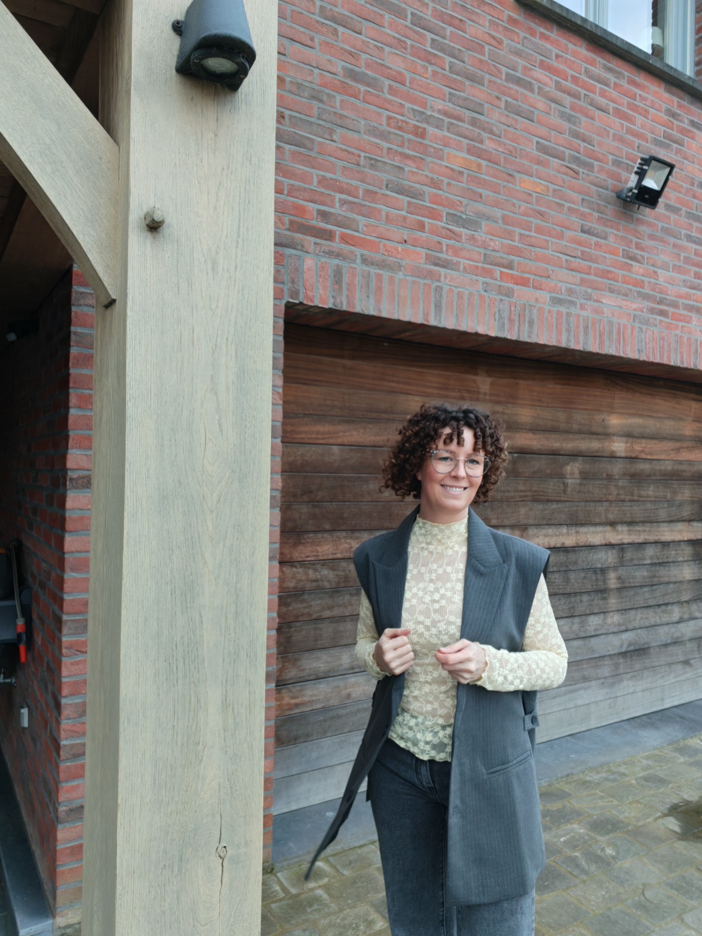Prachtige lace in een lichtgele kleur.Je kan hem onder een trui of t-shirt dragen of combineer hem met een (mouwloze) blazer.Ook verkrijgbaar in het blauw.