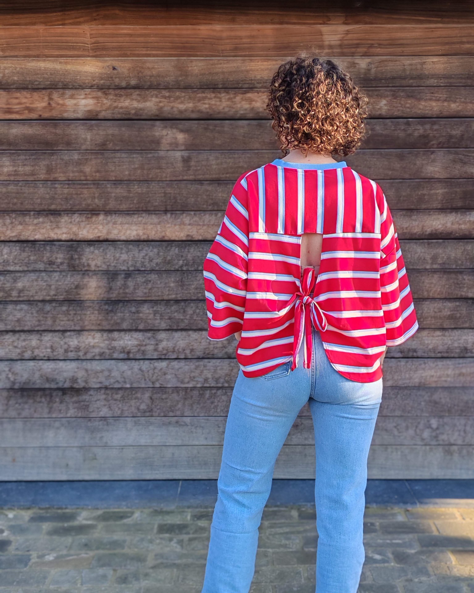 Doordat de achterkant deels open is en voorzien is van een strik, heeft dit shirt net dat tikkeltje meer.