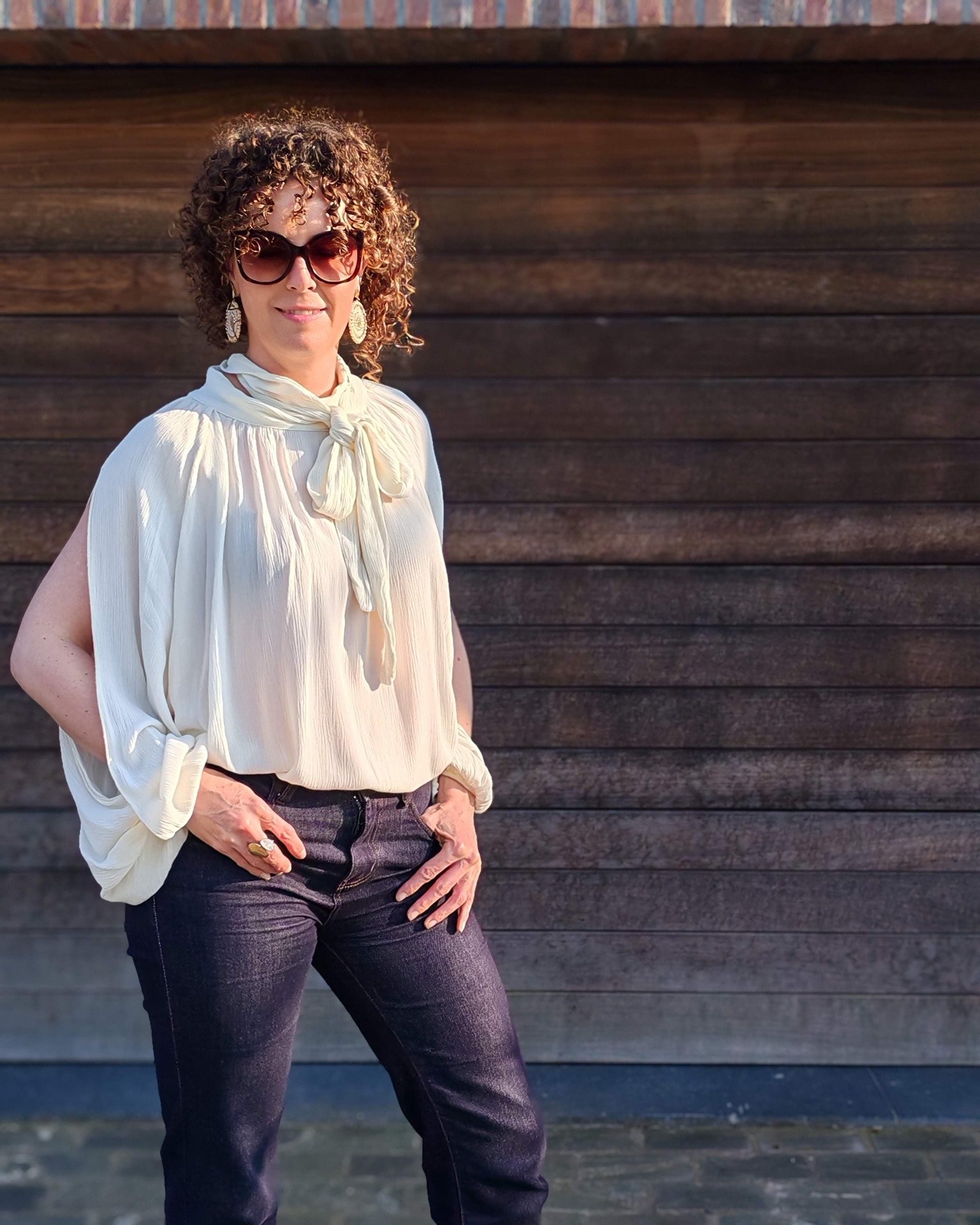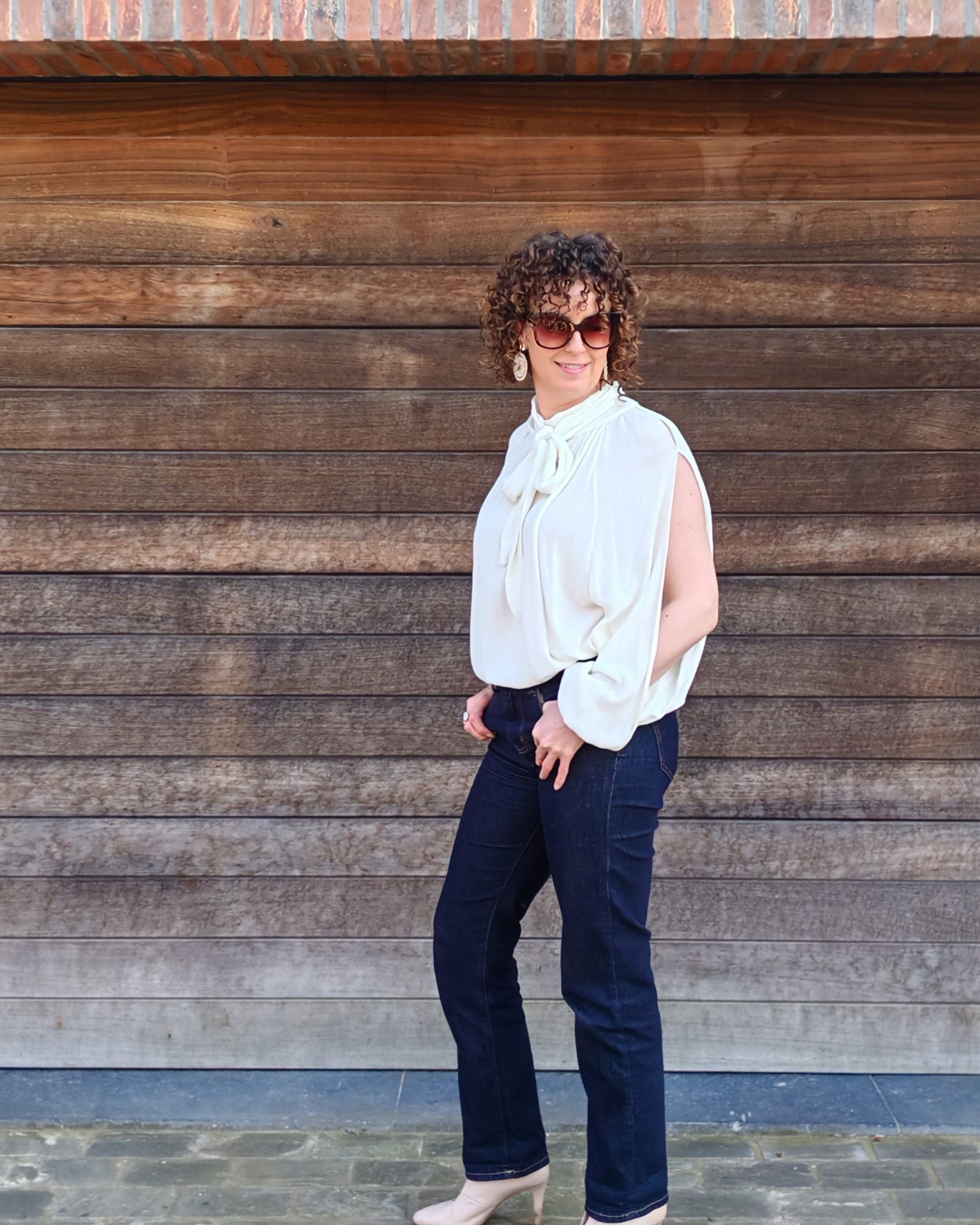 De blouse wordt hier gedragen met onze straight jeans /p/jeans-estee-brown/