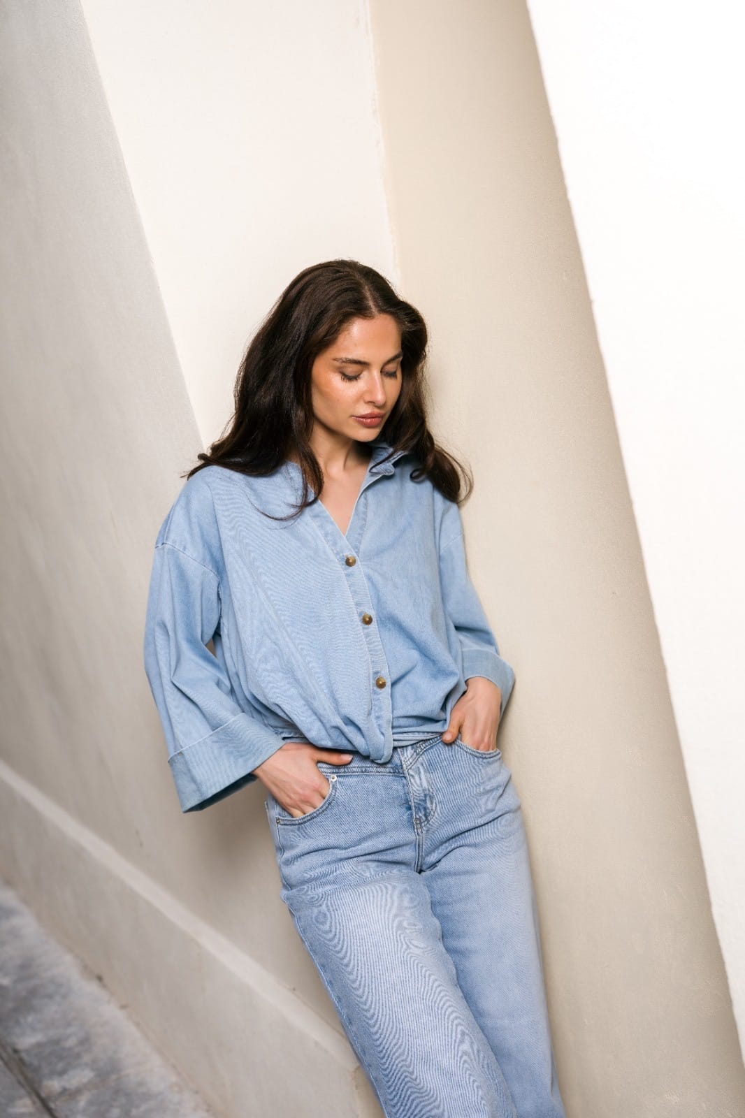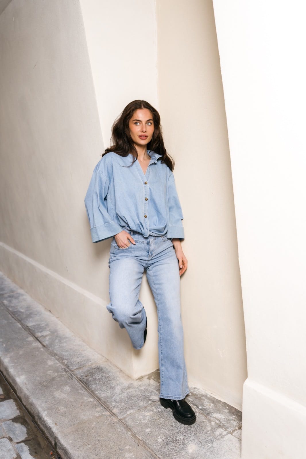 Het hemd is een luchtige denimstof met 3/4 mouw dat je eindeloos kan combineren.