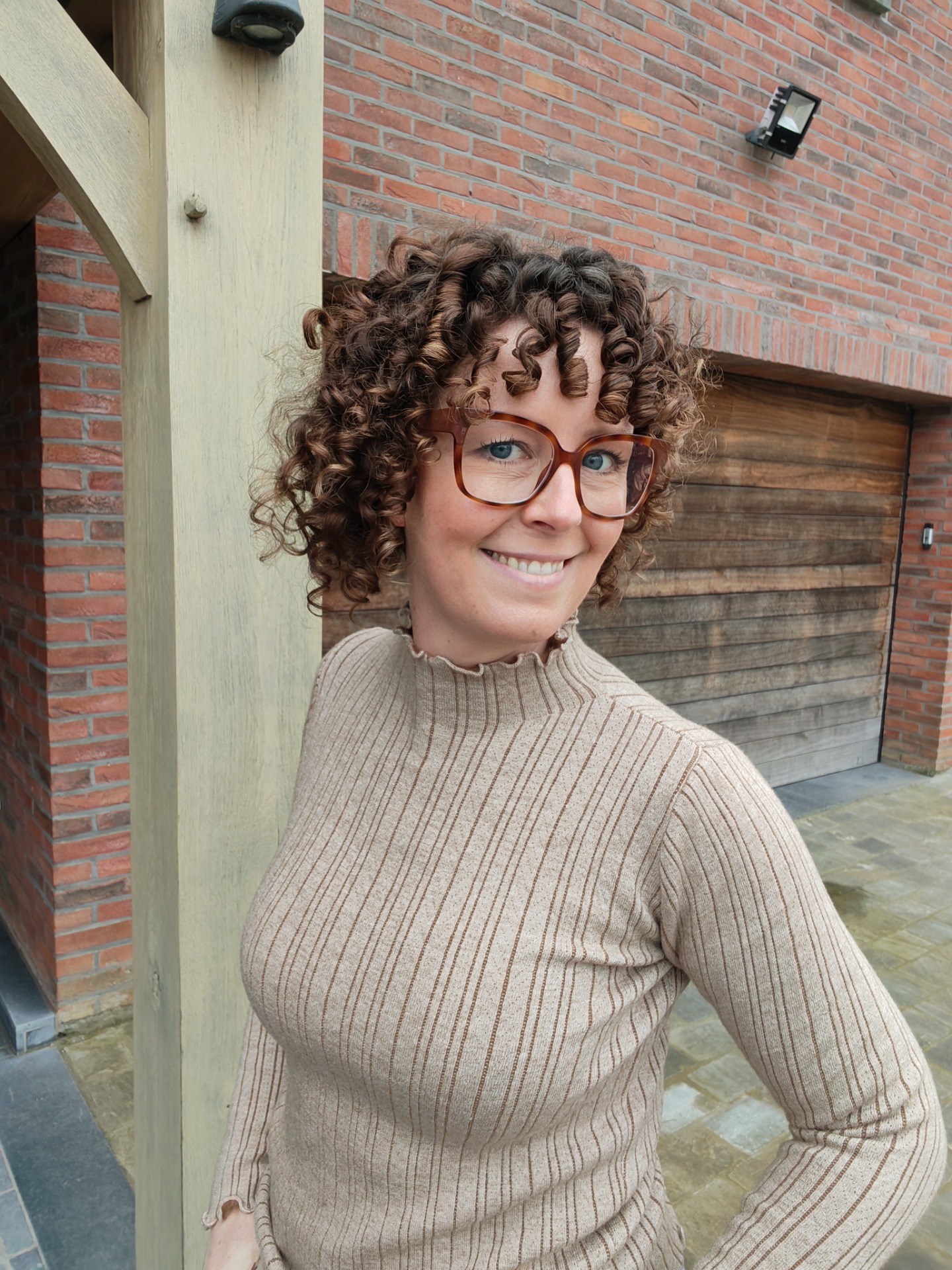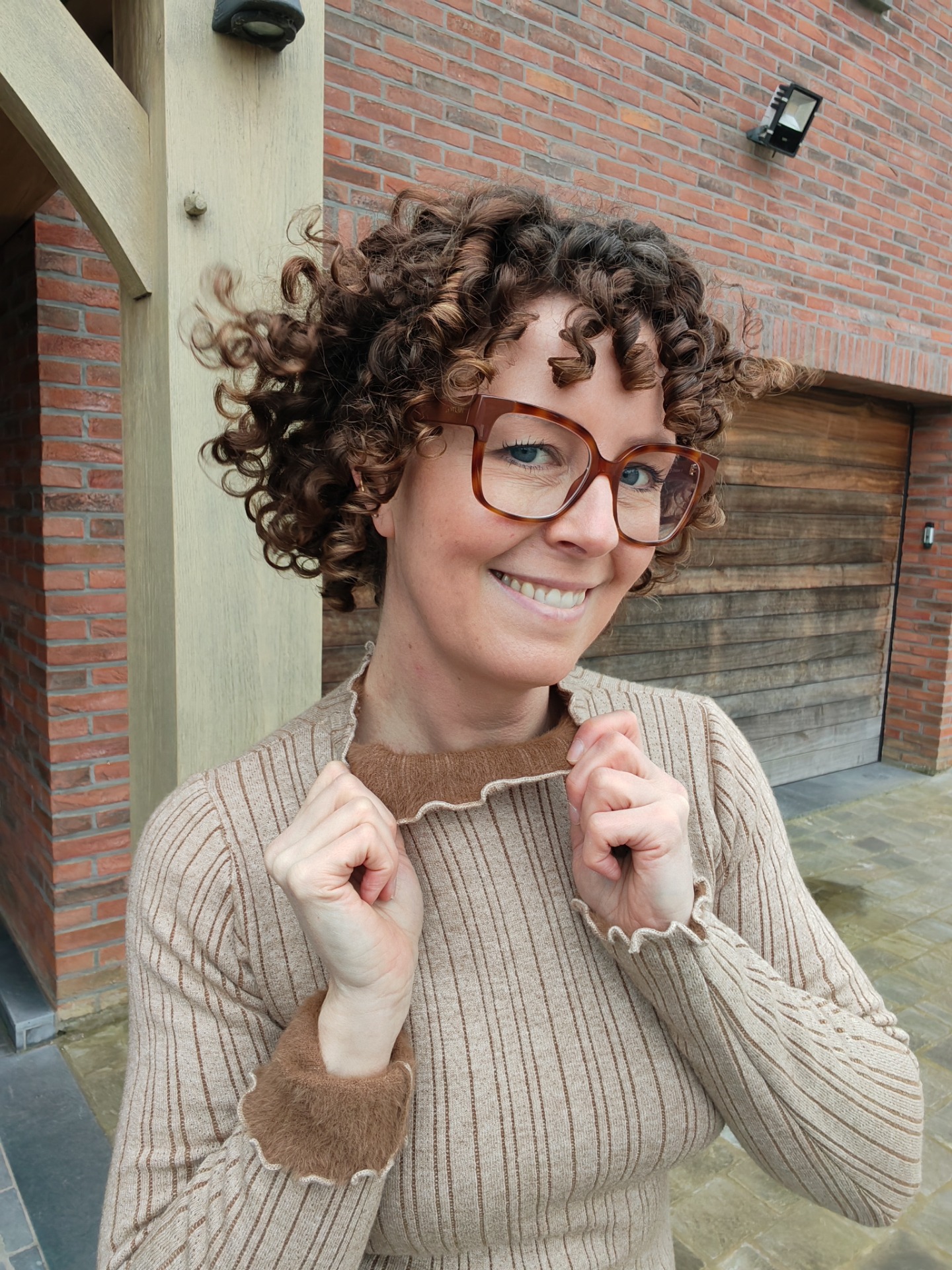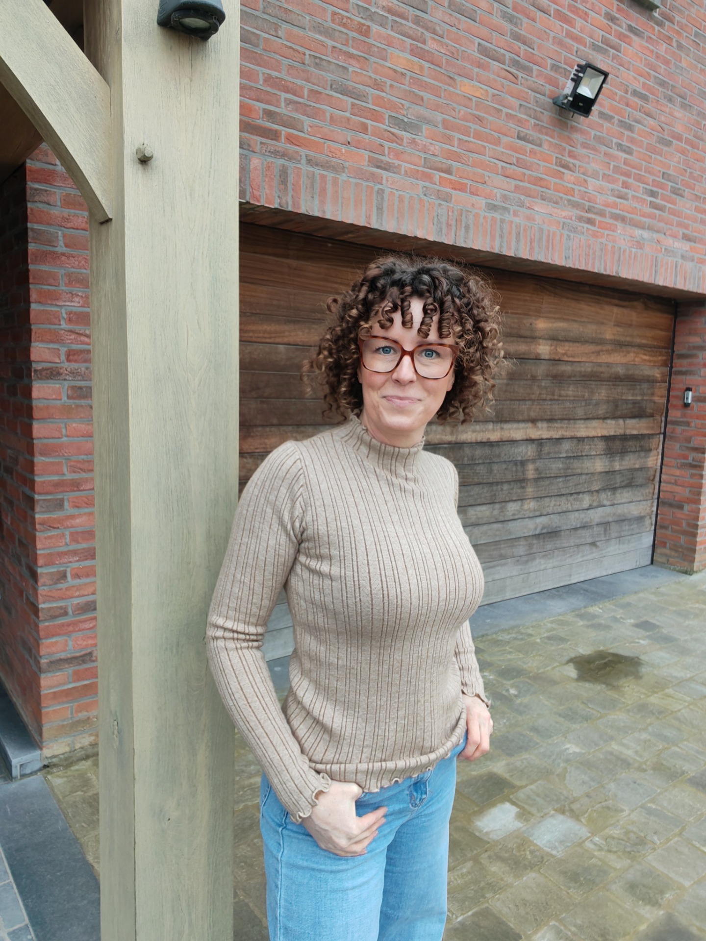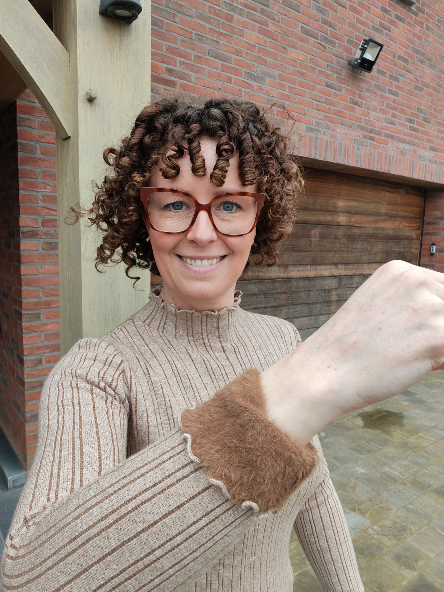 Leuke longsleeve in een taupe kleur met ruches aan de hals en armen.
