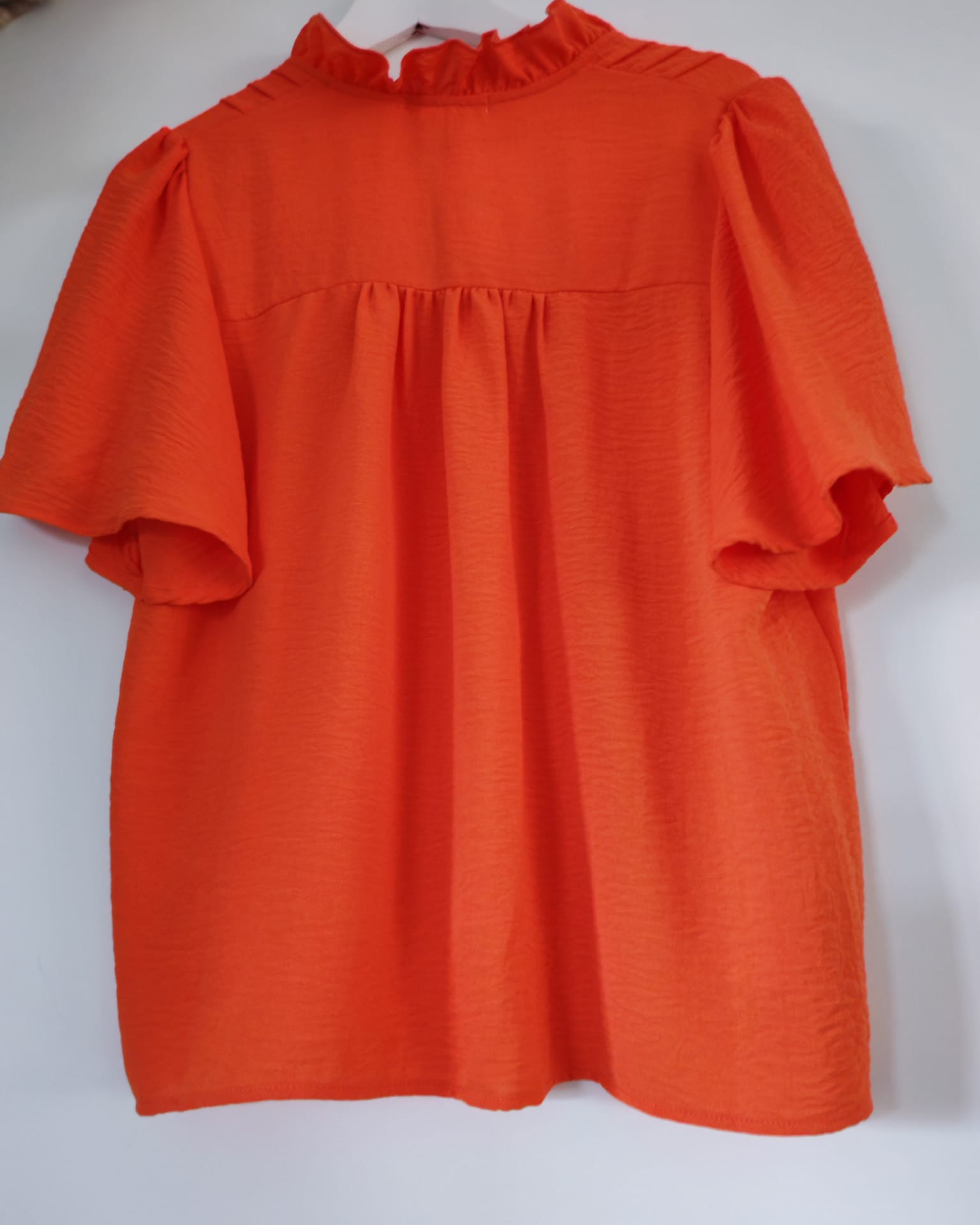 Eenvoudig shirt met bredere mouwen, knoopjes en een opstaand kraagje.