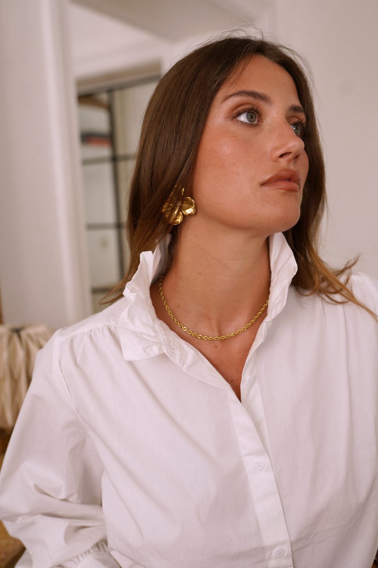 Ons Sofia hemd is een klassieker hemd met een opstaande kraag en fronsjes op de rug.Draag dit hemd eenvoudig met gouden of houten juwelen of draag dit onder een leuke trui.Ook verkrijgbaar in terracotta