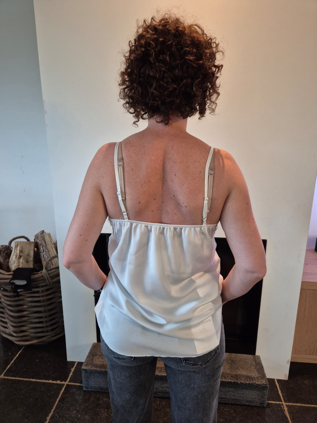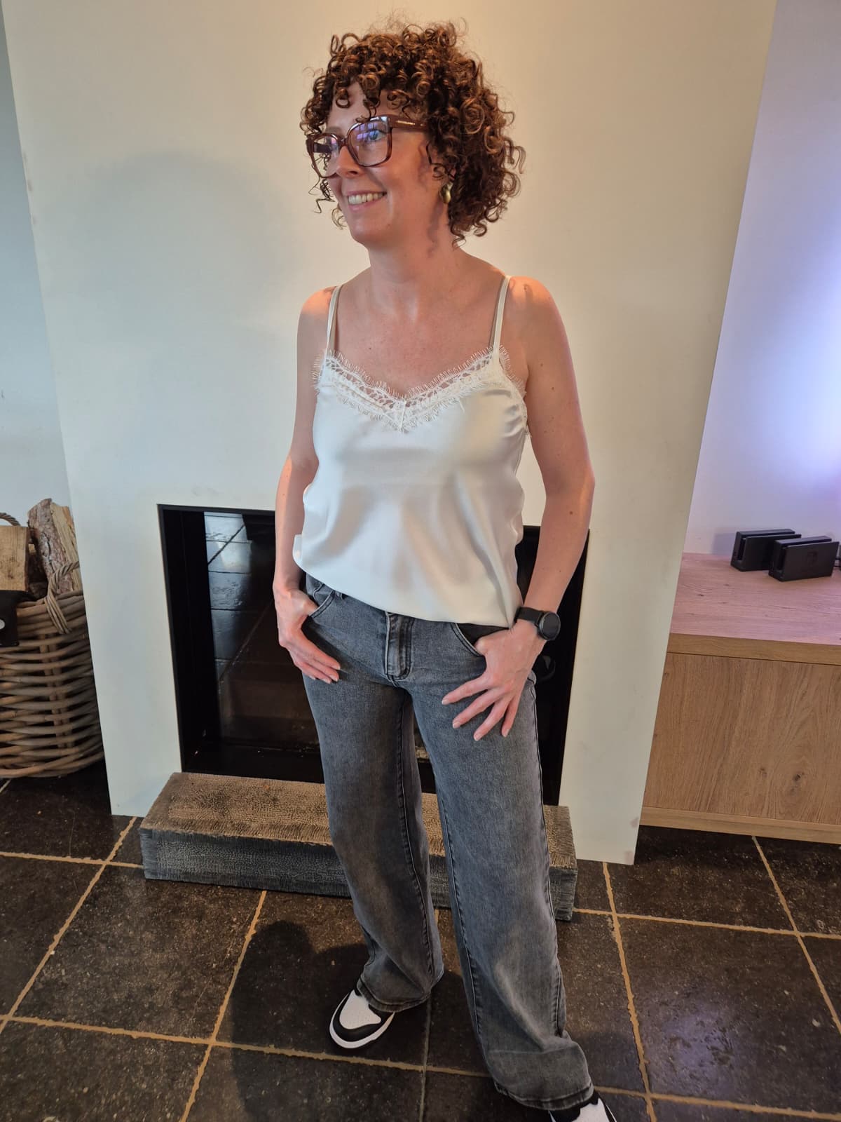 Simpel topje met een leuke boord van kant.Het topje heeft verstelbare bandjes. Draag dit zo, onder een blazer of een toffe cardigan.