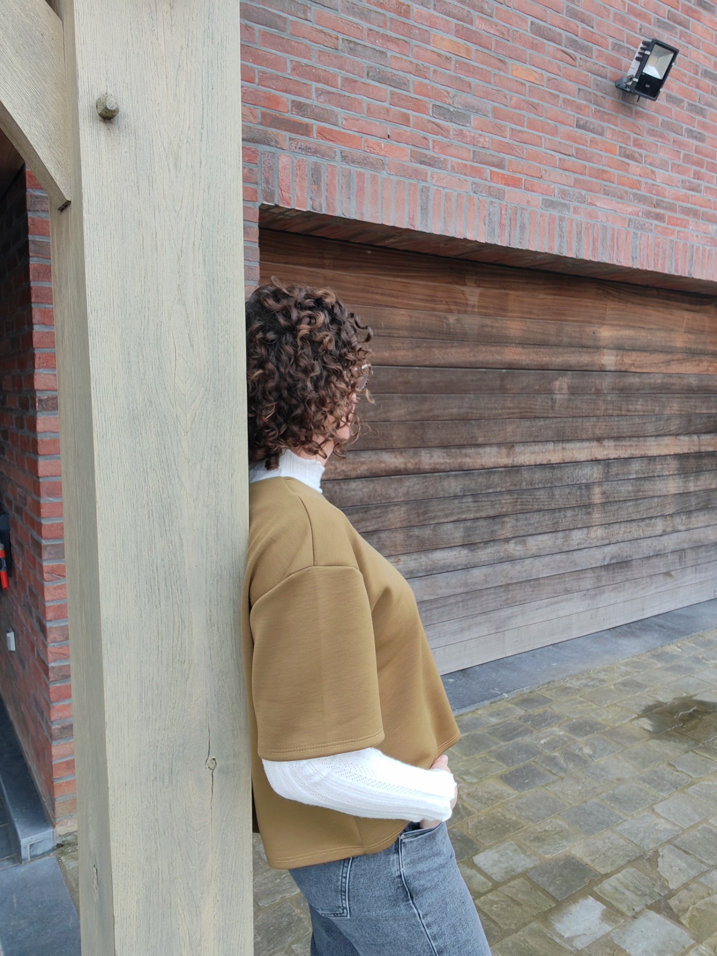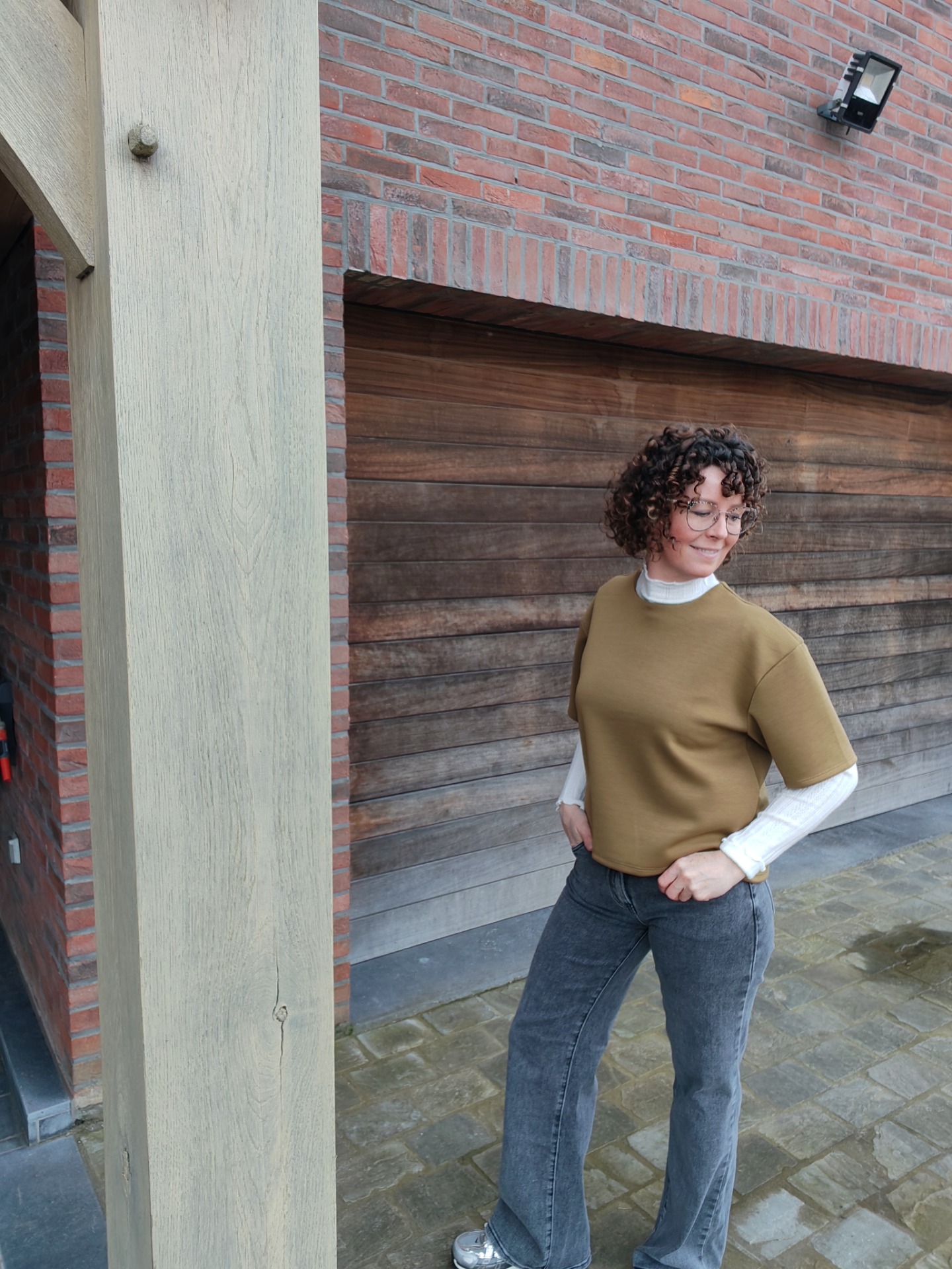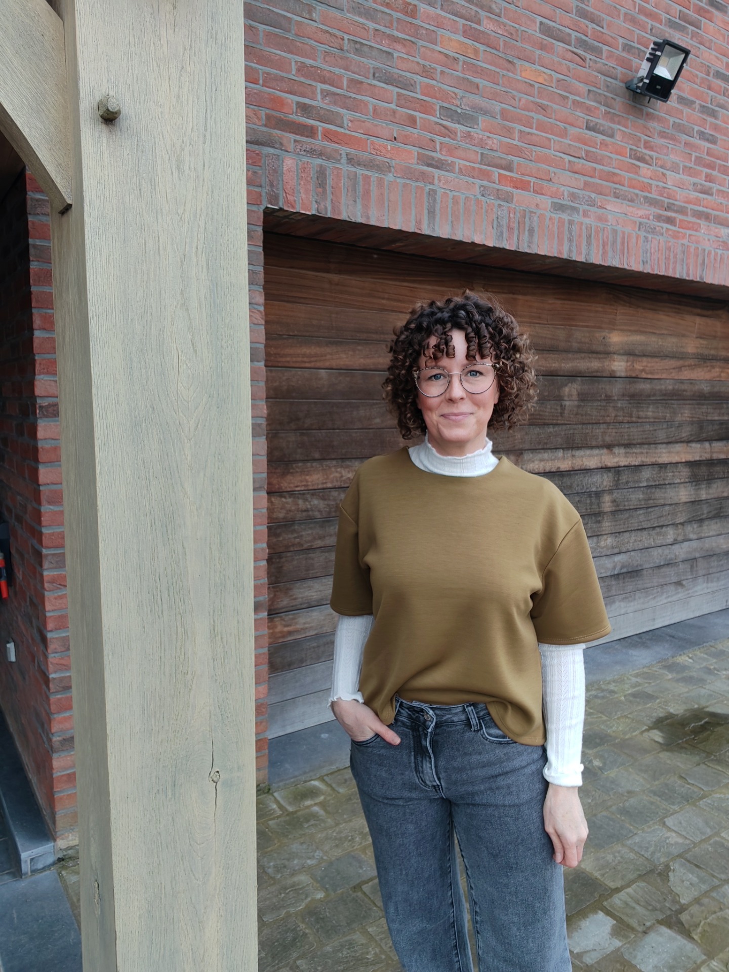 Zachte t-shirt in een olijfgroene kleur.Tof om te dragen op een jeans en af te werken met enkele opvallende juwelen.